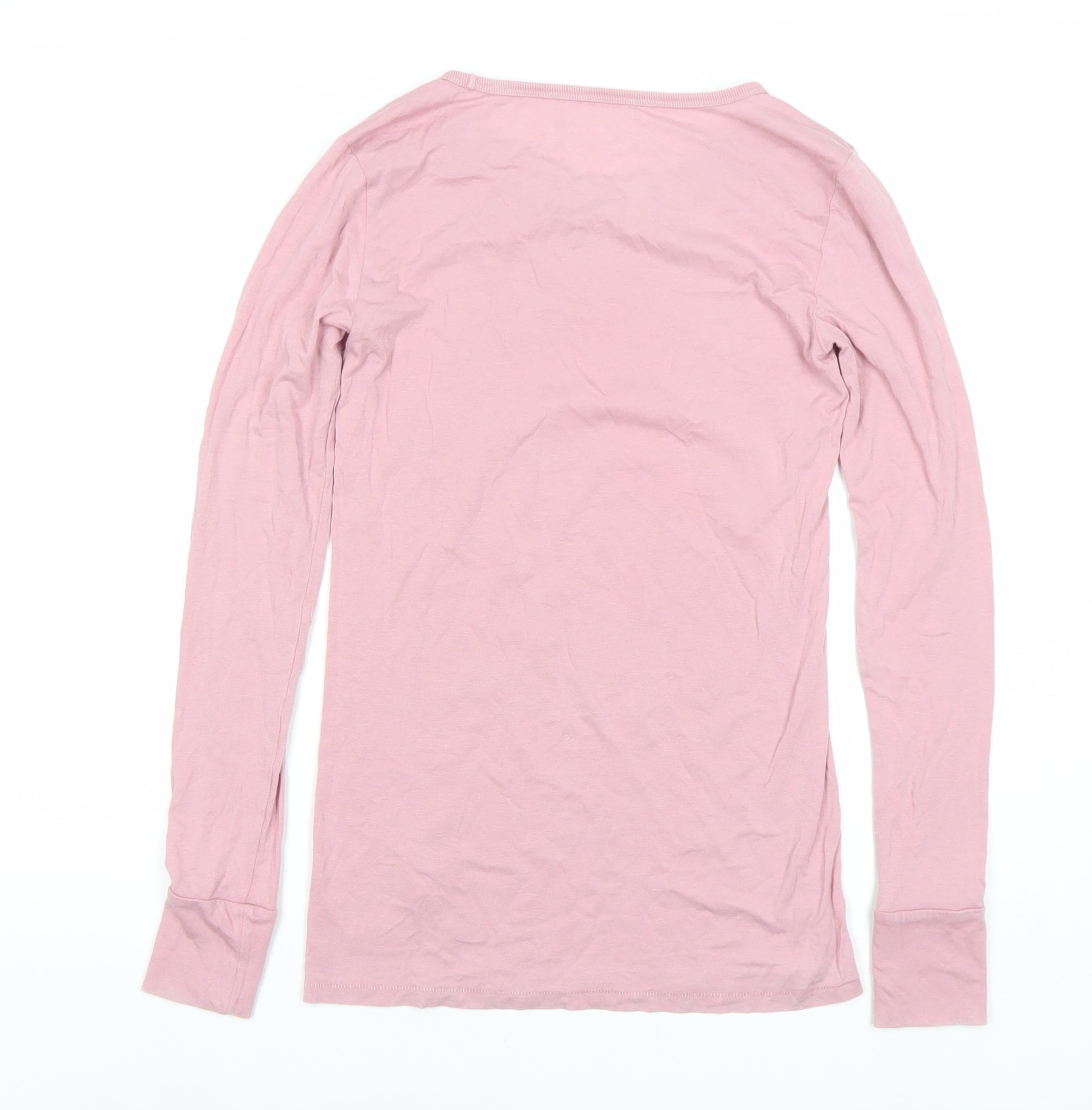 This charming GAP long sleeve T-Shirt in a soft pink hue is an essential addition to any casual wardrobe. Designed for women, it features a comfortable round neck and a classic/fitted sleeve style, ensuring a regular fit that's perfect for all-day wear. Crafted from a luxurious blend of 55% cotton and 45% modal, it promises soft, breathable comfort in every wear. The solid pattern gives it a timeless appeal, and its jersey fabric type adds a touch of casual elegance. Perfect for all seasons, this T-Shirt can be easily paired with jeans or skirt for a relaxed yet stylish look. Whether you're heading out for a casual day or lounging at home, this top is versatile enough to keep you comfortable all day long. A must-have staple that is machine washable for easy care, this T-Shirt comes in an excellent condition with light surface wrinkles. An ideal choice for the fashion-conscious woman who values both comfort and style.