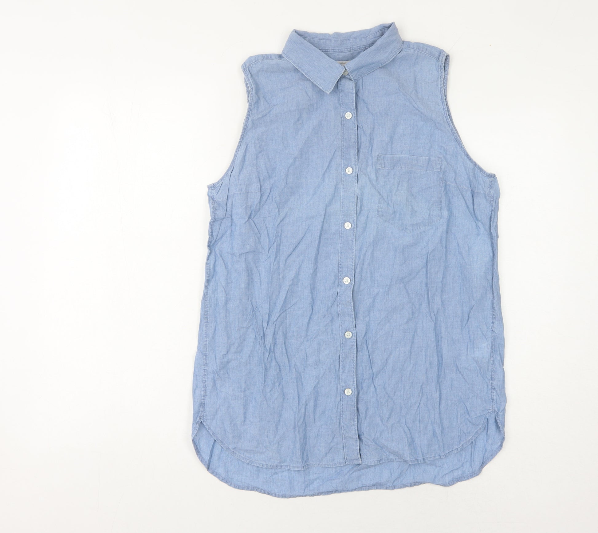 Women Blue Sleeveless Chambray Button-Up Shirt M
