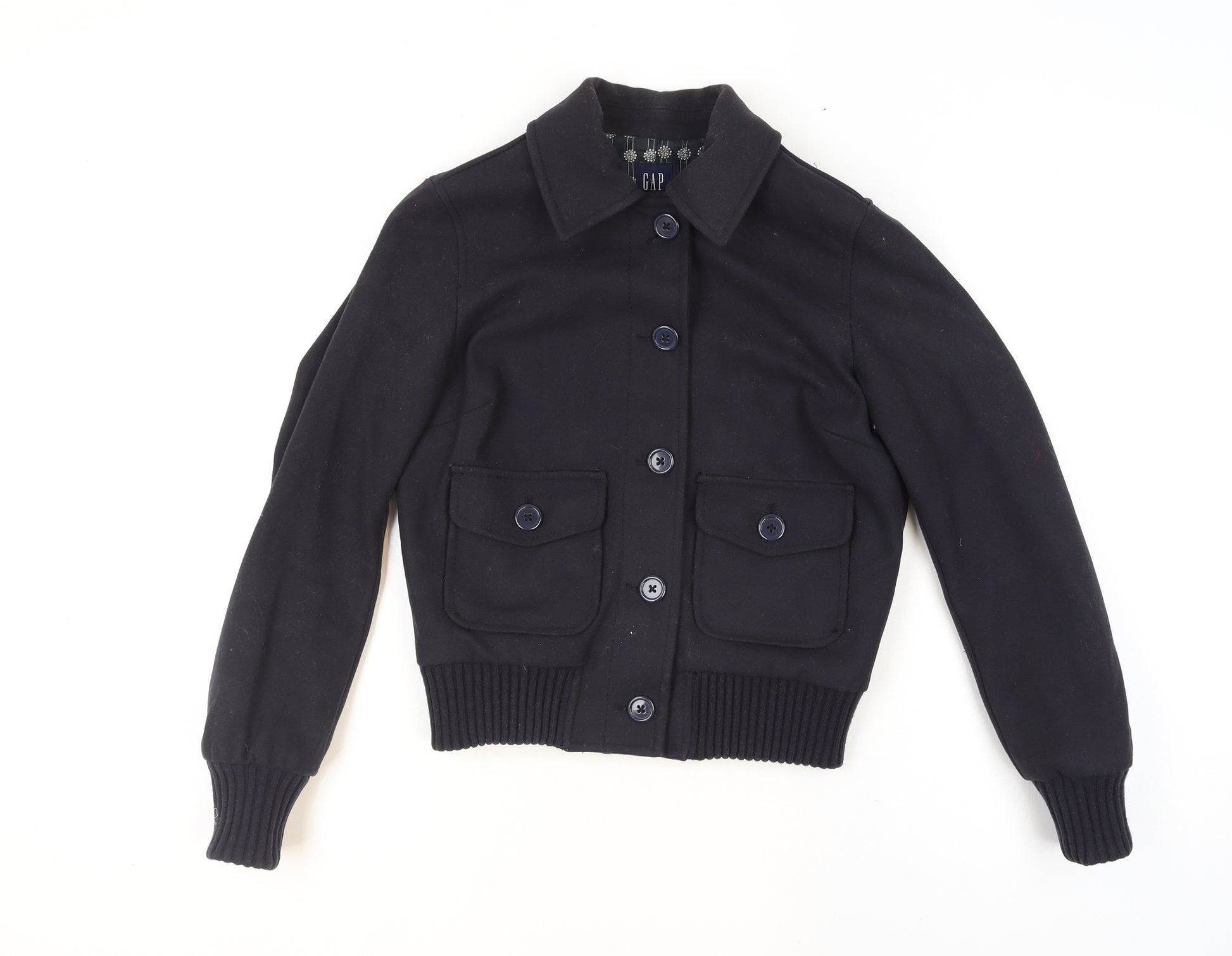 GAP Women’s Black Wool Bomber Jacket XS Classic Button Front