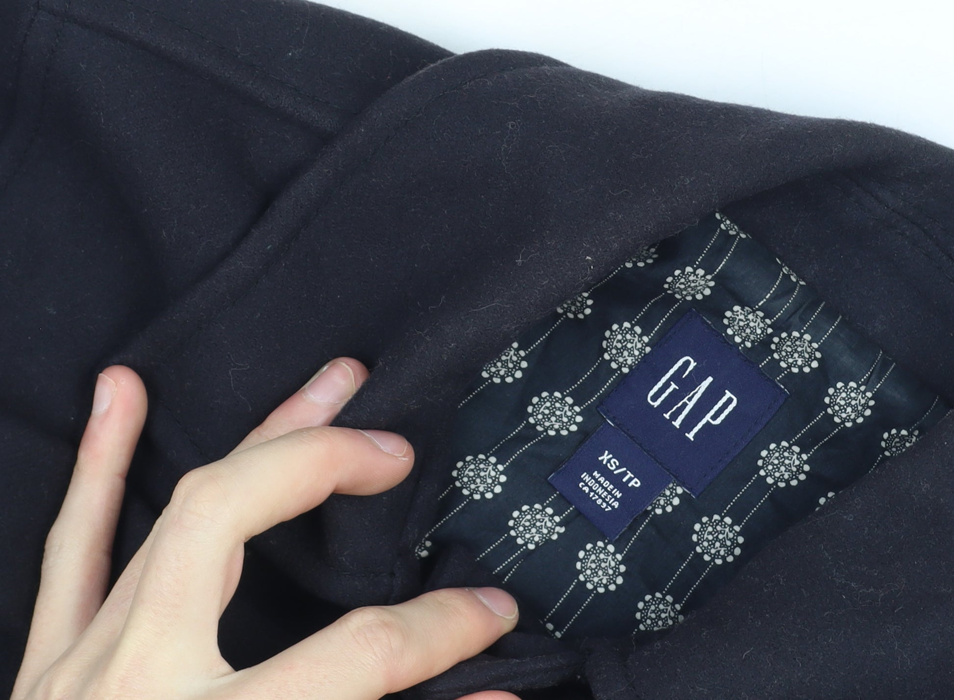 Elevate your winter wardrobe with this timeless black wool bomber jacket from GAP, designed to offer both style and comfort. Crafted from a premium wool blend, this jacket provides exceptional warmth while maintaining a sleek silhouette suitable for all casual occasions. The jacket features a classic collared neckline, full button front fastening, and ribbed cuffs and hem to keep the cold at bay. Two spacious buttoned front pockets enhance both functionality and the jacket’s effortlessly cool aesthetic. The fully lined interior, made from soft cotton, adds an extra layer of comfort and quality craftsmanship. Perfect for layering over knitwear or tees, this piece embodies GAP’s signature blend of simplicity and refinement. The cropped, short-length design gives it a modern twist that pairs perfectly with jeans, tailored trousers, or skirts. This black wool jacket is ideal for autumn and winter wear, offering versatility for daily errands, casual gatherings, or a polished weekend look. Its understated elegance, durable button accents, and smooth finish make it a wardrobe staple that will never go out of fashion. Conditioned in very good pre-owned shape, showing only minor signs of gentle wear, this jacket remains in fantastic form with no significant flaws. Whether you’re dressing up or down, this GAP women’s bomber jacket combines warmth, quality, and timeless design — a must-have item for any modern wardrobe looking for a touch of sophistication and practicality in cooler weather.