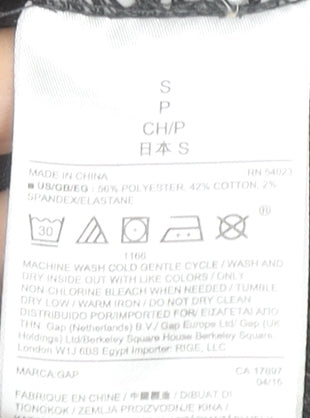 This stylish women’s bomber jacket from GAP is designed to offer both comfort and a timeless appeal to your wardrobe. Presented in a versatile grey shade, it seamlessly pairs with nearly any outfit, making it a perfect layering piece throughout the year. Cut in a flattering short length, this jacket provides a classic silhouette with ribbed cuffs and hem to enhance structure and definition. Crafted with a blend of 56% polyester, 42% cotton and 2% elastane, the outer material delivers a soft yet durable feel while ensuring added stretch for ease of movement. This fabric mix makes it practical for day-to-day wear. The geometric textured knit adds a touch of detail, elevating the jacket beyond the basics. The lining provides light coverage, making it ideal for transitional seasons like spring and autumn. Key features include a secure full zip fastening through the front, practical side pockets for essentials, and a clean, collarless neckline typical of the bomber style. It balances casual styling with functional construction, making it a reliable option for everyday wear. The jacket is machine washable, ensuring easy garment care and hassle-free maintenance. This GAP bomber jacket is sized as “Small”, which is a UK equivalent suitable for women’s regular sizing, offering a relaxed yet slightly fitted cut for comfort. Its regular fit makes it easy to layer over t-shirts, tops, or knitwear. Designed with long sleeves, it’s great for cooler weather, while its breathable cotton blend fabrication ensures comfort indoors and out. Whether worn with jeans for a laid-back casual look, paired with skirts and trainers for a chic off-duty style, or layered over dresses to add a sporty twist, this jacket is a versatile essential. The zip accent, combined with textured fabric, delivers a modern yet classic finish that will remain a wardrobe staple. In excellent pre-owned condition with minimal signs of wear, this GAP bomber jacket offers exceptional value. It is perfect for someone seeking a well-made, everyday layering piece with a modern edge. Add this reliable and comfortable jacket to your wardrobe today to enjoy stylish wear across seasons.