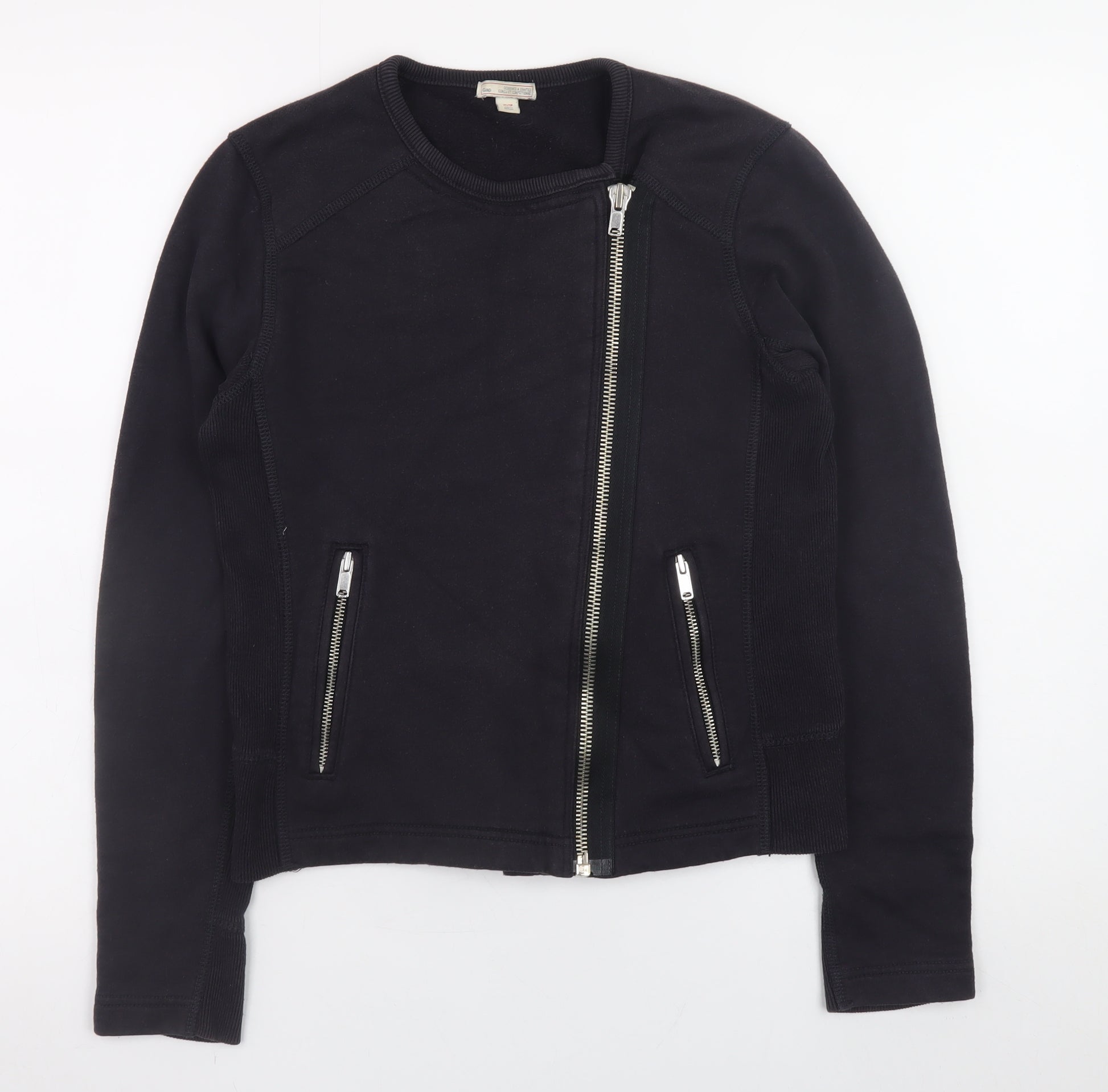Womens Black Asymmetric Zip Sweatshirt XS Cotton Blend