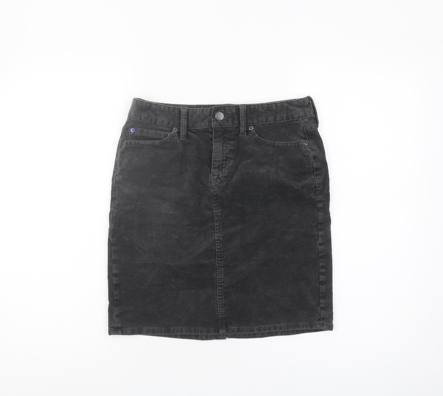 Step out in effortless style with this Gap Women's Black Corduroy Skirt. Perfect for casual occasions, its soft corduroy fabric combined with the straight pencil style offers a flattering silhouette. With a mid-rise fit, this skirt is both comfortable and chic. The practical pockets add functionality, making it an ideal piece for everyday wear. Crafted from a durable cotton-elastane blend, it ensures a snug and comfortable fit. The black hue provides versatility, pairing well with a variety of tops and footwear. Layer it with tights for colder days. Its machine washable attribute adds convenience to your wardrobe rotation. Whether you're heading to a casual meeting or a day out with friends, this skirt offers a stylish option for the colder months.
