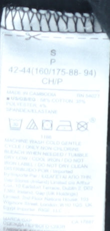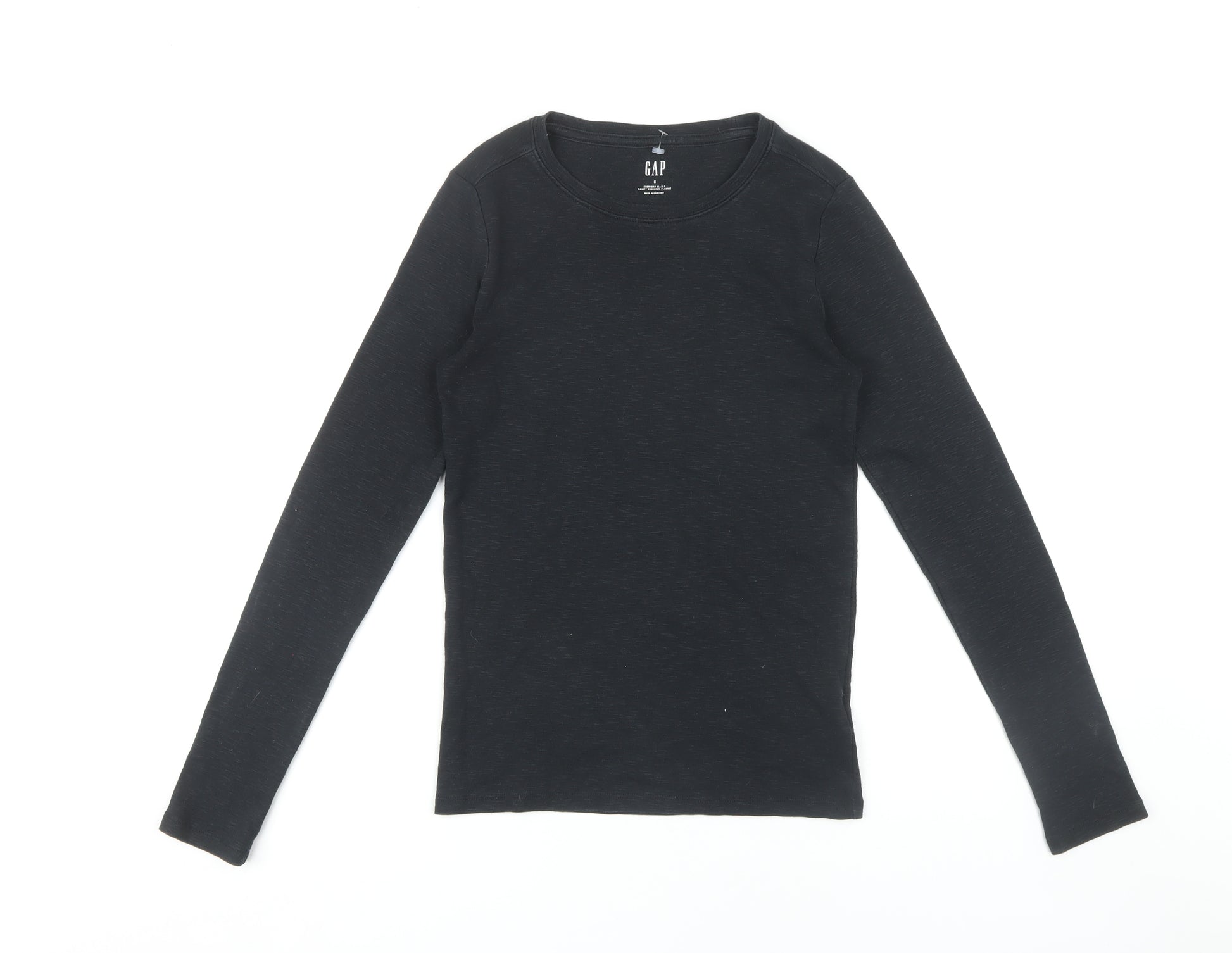 Discover the style and versatility of this classic black long sleeve t-shirt from Gap. Perfect for any casual occasion, this t-shirt is a must-have addition to your wardrobe. Made from a comfortable blend of 58% cotton, 39% polyester, and 3% elastane, it provides a soft, breathable fit that keeps you comfortable throughout the day. The solid black colour and round neck style offer timeless appeal, making it easy to pair with a variety of outfits.Whether you're dressing up for a laid-back day out or heading to work on a casual Friday, this t-shirt is suitable for all seasons. Its regular size fit and women's department design cater to fashionistas looking for both style and comfort. The long sleeves add a touch of sophistication while keeping you warm during the cooler months.Machine washable for easy care and maintenance, this Gap t-shirt is both practical and stylish. In very good condition, it shows only slight signs of wear and tear, ensuring you a piece that still looks fresh and appealing. At an affordable price, it's a smart choice for anyone looking to update their collection with a versatile staple that promises both quality and style.