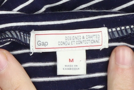 Upgrade your wardrobe with this exceptionally stylish Gap skirt. Designed with chic blue and white stripes, this A-Line skirt offers a modern and elegant look suitable for various casual occasions. Constructed with a comfortable blend of 95% viscose and 5% elastane, it ensures a soft and stretchy fit for all-day wear. The medium size and regular fit make it a versatile addition to any fashion-forward women's collection. Embrace its easy-to-care machine washable fabric, perfect for maintaining its pristine condition and vibrant colour. While the unembellished simplicity keeps the look sleek, the elastic waistband guarantees comfort and flexibility. Pair it effortlessly with your favourite tops for a put-together ensemble. Ideal for spring through winter, this is a wardrobe essential for any season.