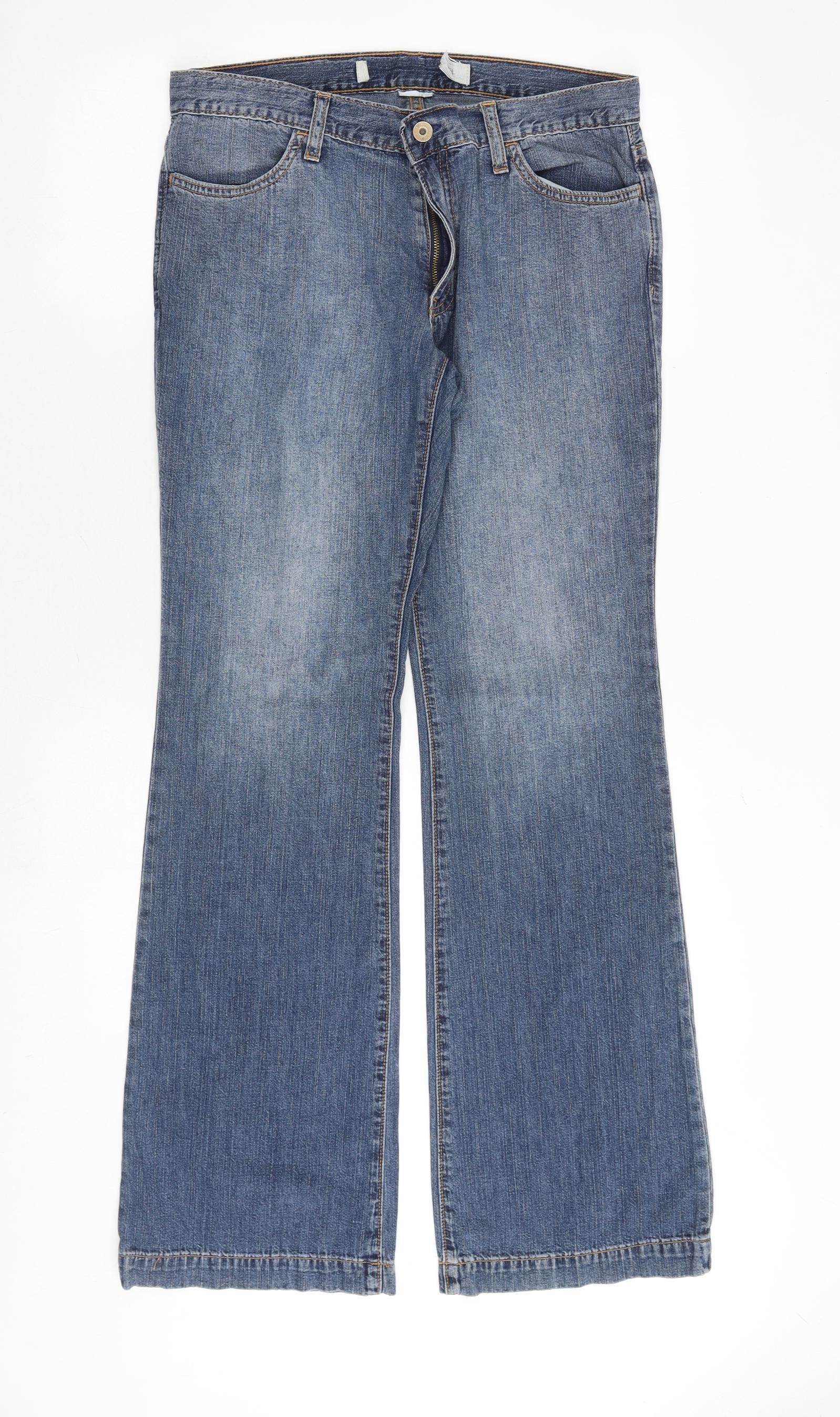 Womens Blue Cotton Bootcut Jeans Size 32 in Regular Zip