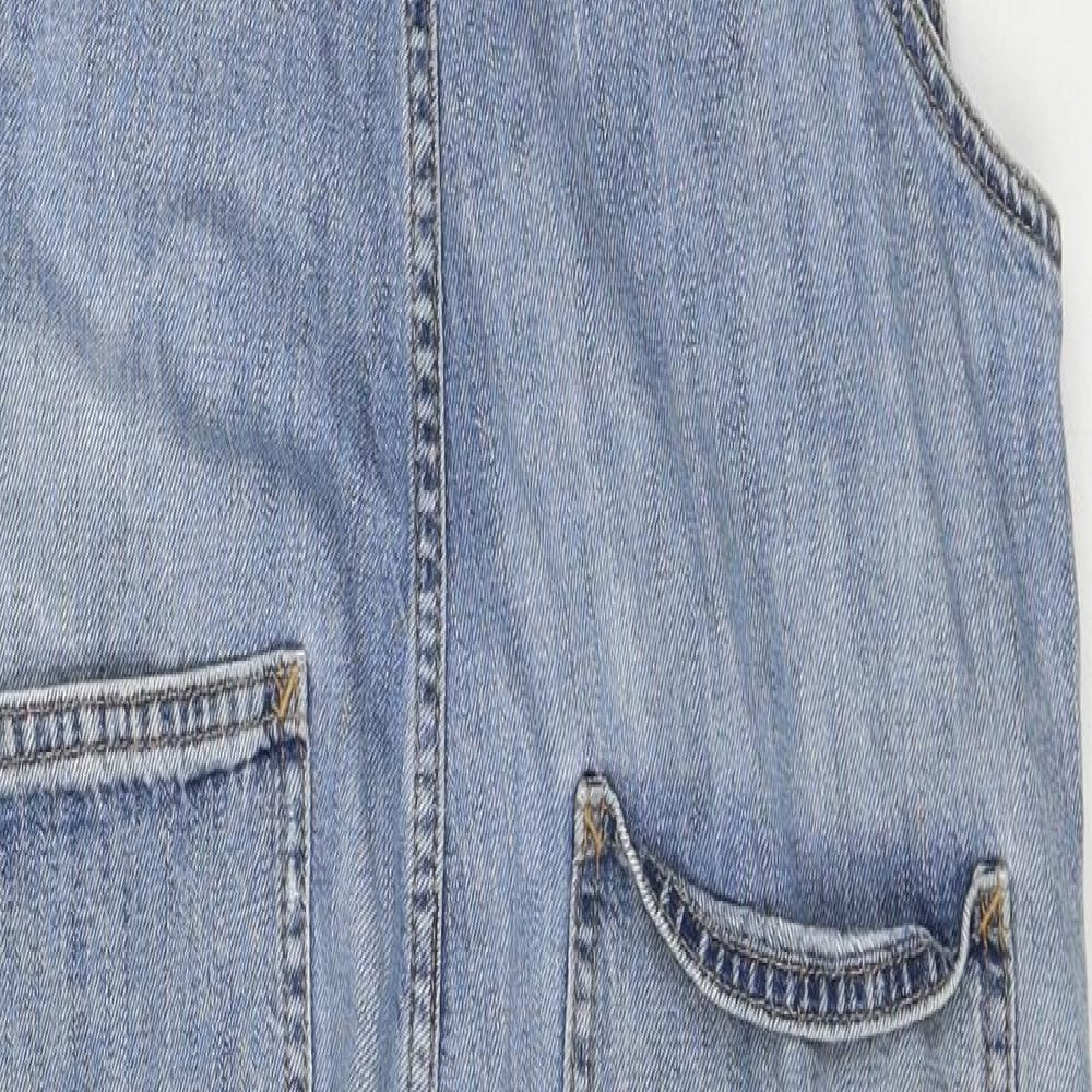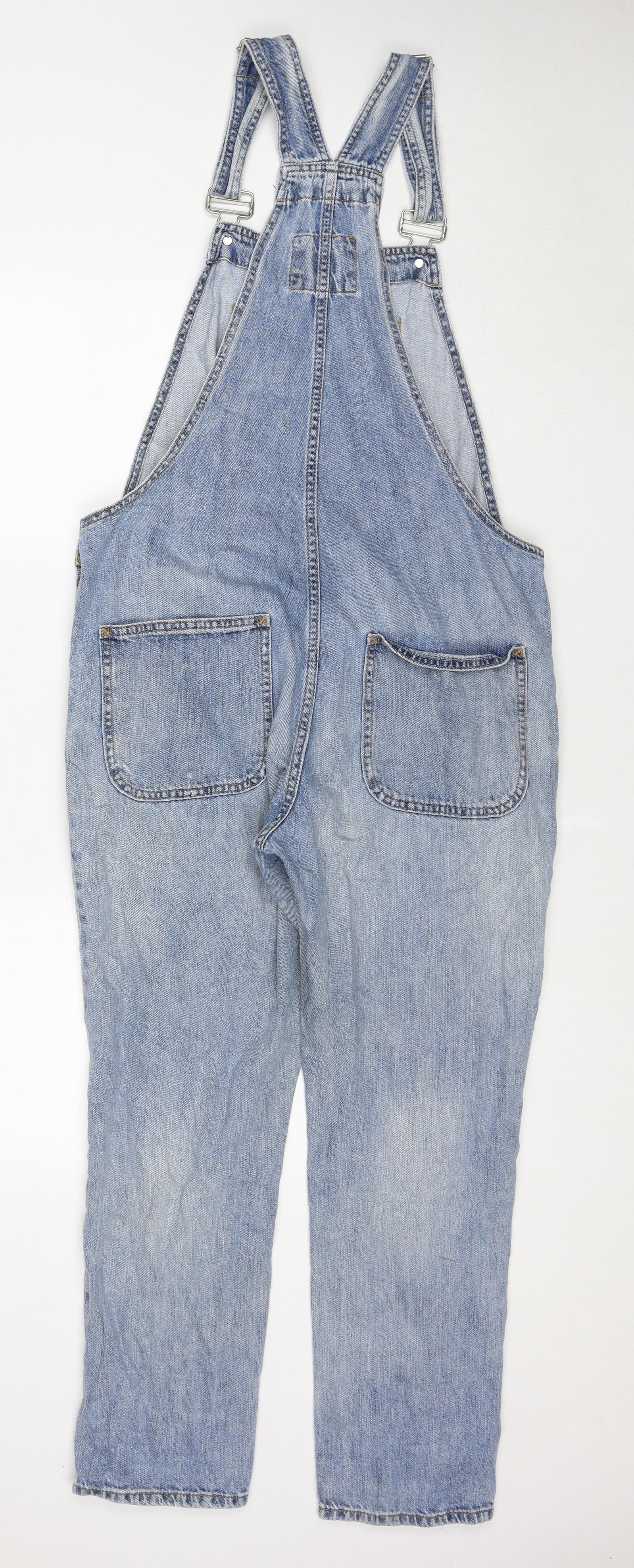 Womens Blue Cotton Dungaree One-Piece Size S Button - Distressed