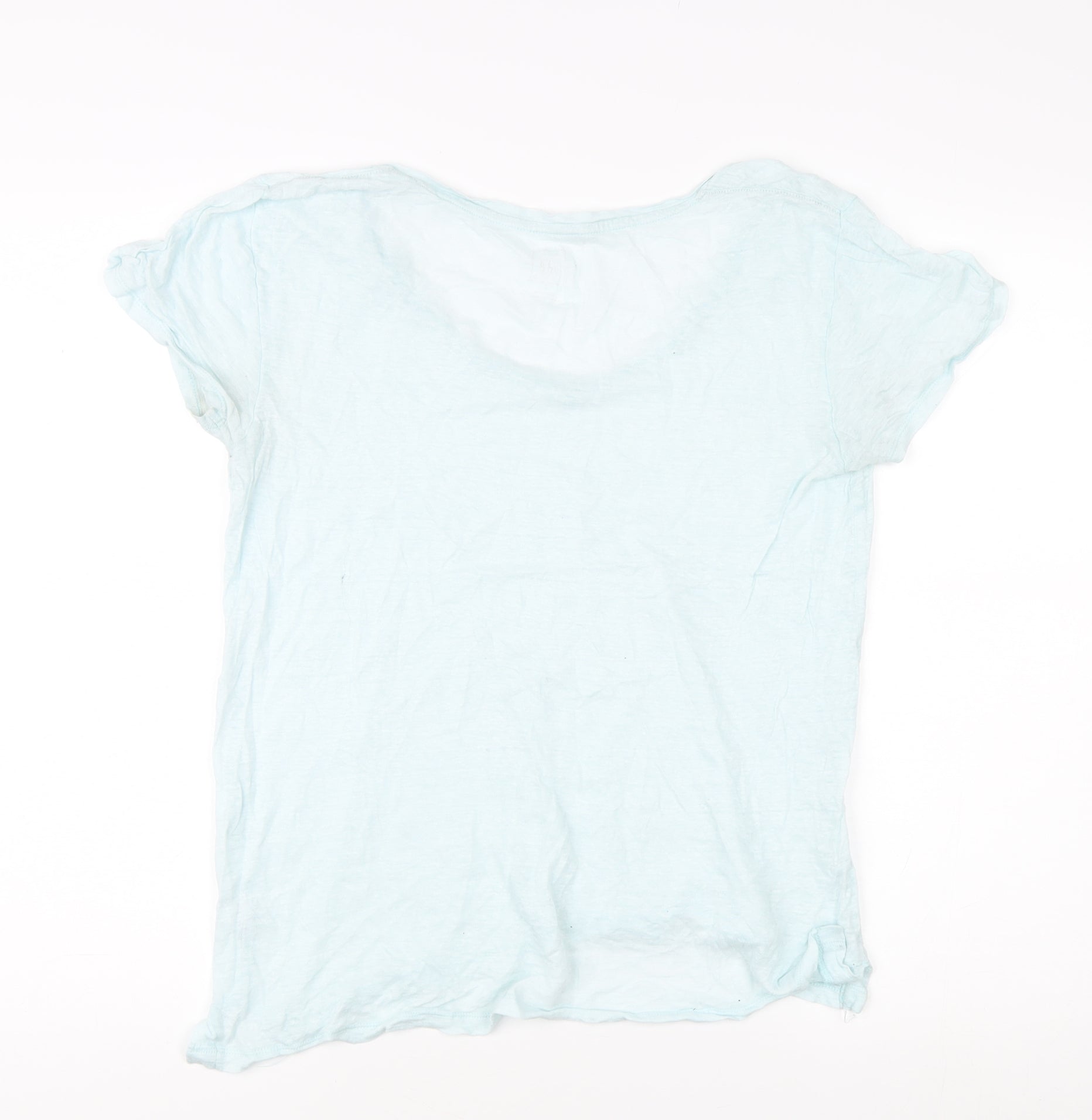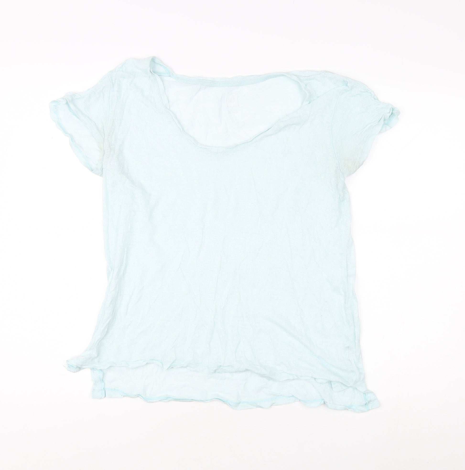 Add a touch of casual elegance to your wardrobe with this Gap Women's Blue Scoop Neck T-Shirt in size S. Perfectly suited for summer outings or relaxed indoors lounging, this stylish tee offers a comfortable regular fit that effortlessly combines flair with simplicity. Crafted from soft, breathable cotton, the shirt ensures you stay comfortable while maintaining a chic, laid-back vibe. With its solid blue colour, it pairs seamlessly with a variety of outfits, enhancing your style quotient wherever you go. The scoop neckline and classic short sleeves add to its timeless appeal, making it a versatile piece destined to become a staple in your seasonal wardrobe. Whether you're heading out for a casual meet-up or simply running errands, this T-shirt promises to be your go-to choice. The machine-washable fabric ensures effortless maintenance while the excellent craftsmanship guarantees durability. Priced attractively and in good condition, though slightly wrinkled, it's an ideal pick for style-conscious individuals seeking an affordable yet fashionable addition to their clothing collection. Don't miss the opportunity to own this versatile piece that embodies comfort and style.