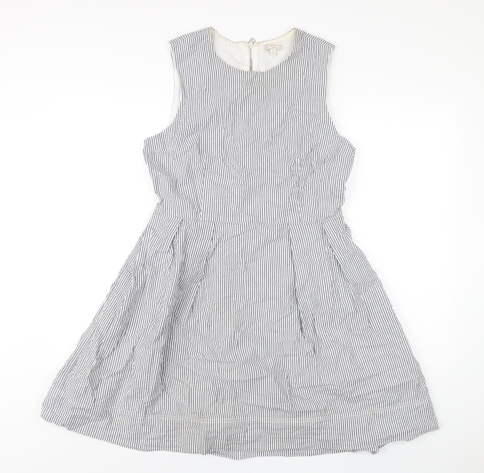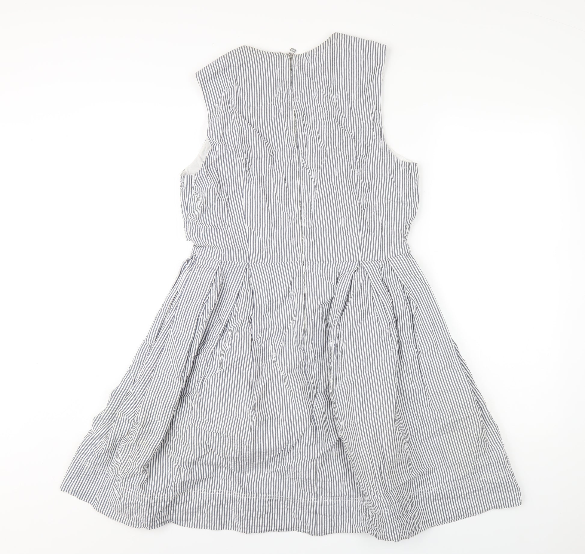 Womens Blue Striped Cotton A-Line Size 8 Round Neck Zip