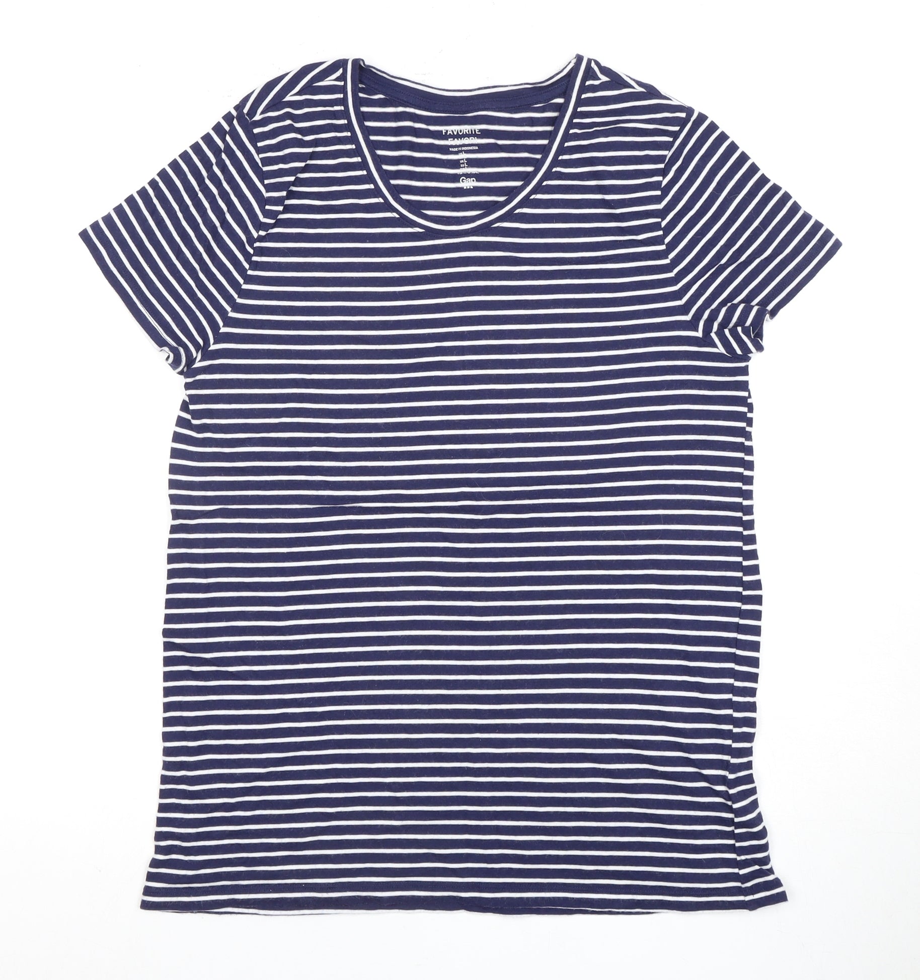 This stylish Gap women's T-shirt is perfect for adding a touch of sophistication to your casual wardrobe. Made with a soft and comfortable blend of 60% cotton and 40% polyester, it's designed to provide a classic fit and feel. The short sleeves and round neck enhance its basic style, making it a versatile option for everyday wear. The beautiful blue striped pattern adds a pop of colour, ideal for pairing with a variety of bottoms for any casual occasion. The jersey fabric ensures breathability, perfect for all seasons whether layered or worn alone. Easy to care for with its machine washable feature, this T-shirt is both practical and stylish. Whether you're heading for a relaxed day out or a casual meet-up, this T-shirt will give you a timeless and chic look.