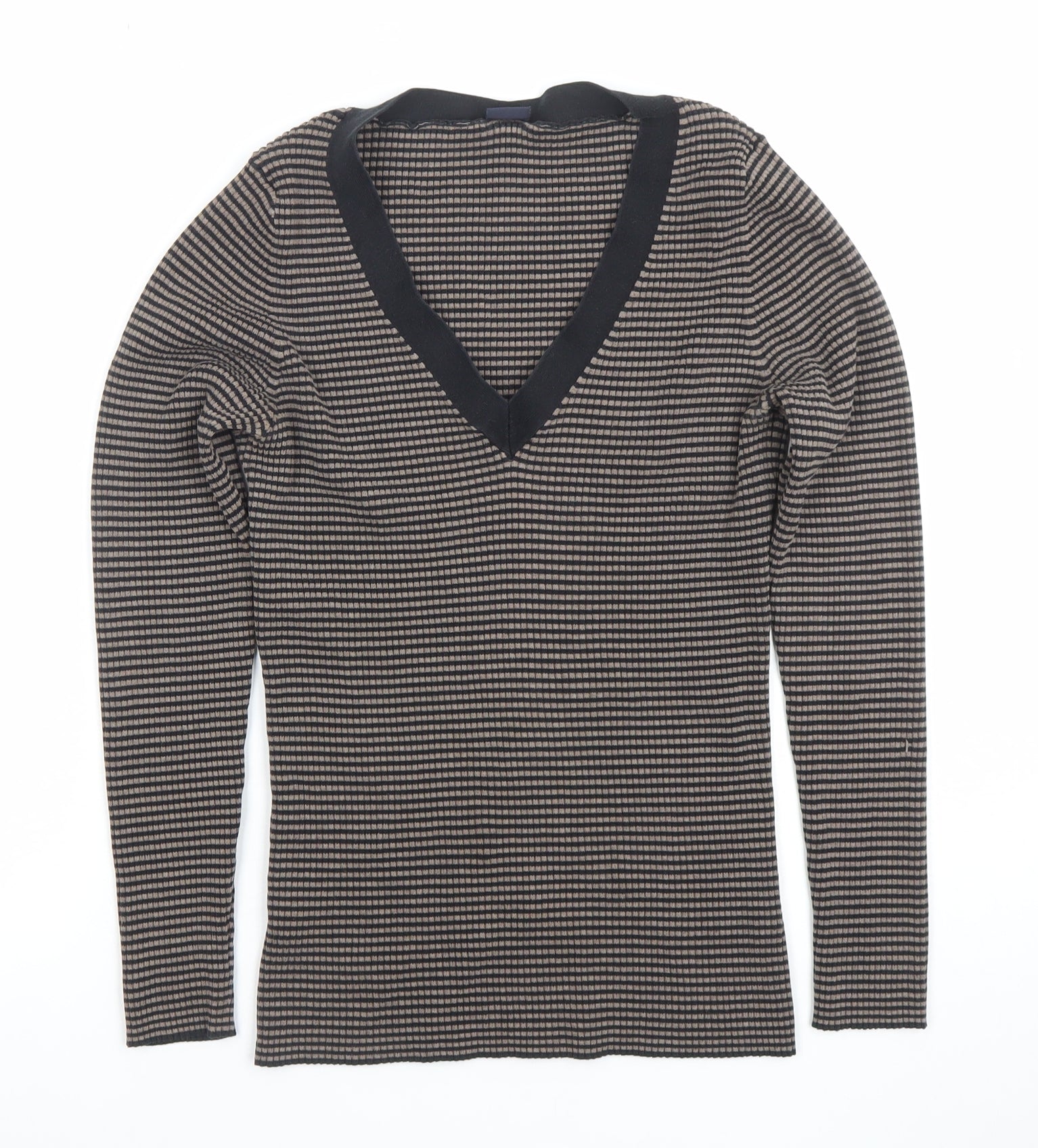 GAP Womens Brown Striped V-Neck Long Sleeve Slim Fit Pullover Jumper Size L