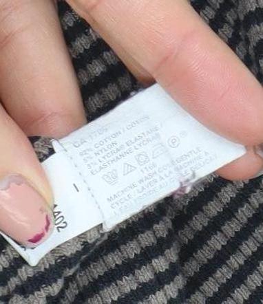 This elegant GAP women’s pullover jumper offers timeless style with a comfortable, flattering fit. Crafted from a soft cotton and elastane blend, it provides a light stretch for flexible movement while maintaining a slim and feminine silhouette. Featuring a subtle brown and beige striped pattern, it brings a refined update to classic knitwear — ideal for layering across seasons. The deep V-neckline with contrasting dark trim adds a touch of sophistication, making it versatile for both casual and semi-smart wear. The long-sleeved construction and breathable knit fabric ensure this jumper keeps you cosy in cool autumn and winter months while remaining lightweight enough for spring days. With its easy-care, machine washable design, this piece is as practical as it is stylish. A reliable wardrobe staple, it pairs beautifully with denim, skirts, or tailored trousers for effortless versatility. In excellent pre-owned condition with minimal wear, this GAP jumper remains in fantastic shape and ready to freshen up your collection. Whether you’re heading to the office, enjoying weekend outings, or relaxing at home, this striped V-neck pullover brings comfort, durability, and timeless design together. Perfect for layering under coats or wearing alone as a statement knit, it delivers a blend of functionality and classic appeal renowned from GAP’s enduring knitwear range.