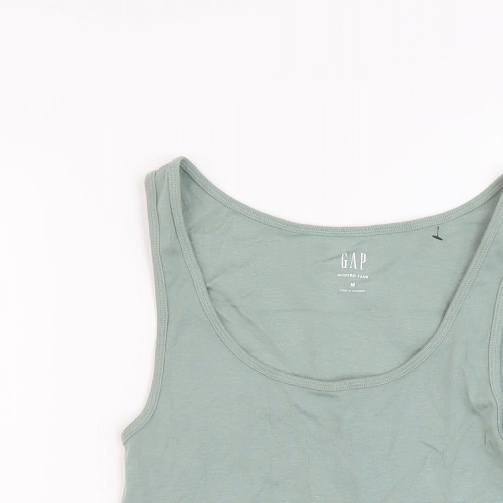 Womens Green Cotton Basic Tank Size M Round Neck