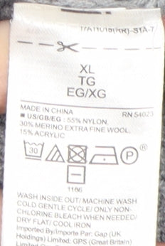 Embrace the soft comfort and elegant style of the GAP Women's Grey Crew Neck Jumper. Crafted from a luxurious blend of Merino Wool, Acrylic, and Nylon, this pullover ensures both warmth and durability, perfect for the chillier autumn and winter months. The jumper features a classic crew neckline and raglan long sleeves, offering a relaxed yet polished look. Designed in a regular fit, it's an ideal addition to your casual wardrobe. The versatile grey colour makes it easy to pair with any outfit, whether you're heading to work or enjoying a cozy day at home. Machine washable for easy care, this knit jumper is both practical and stylish, making it a must-have for any fashion-forward woman.