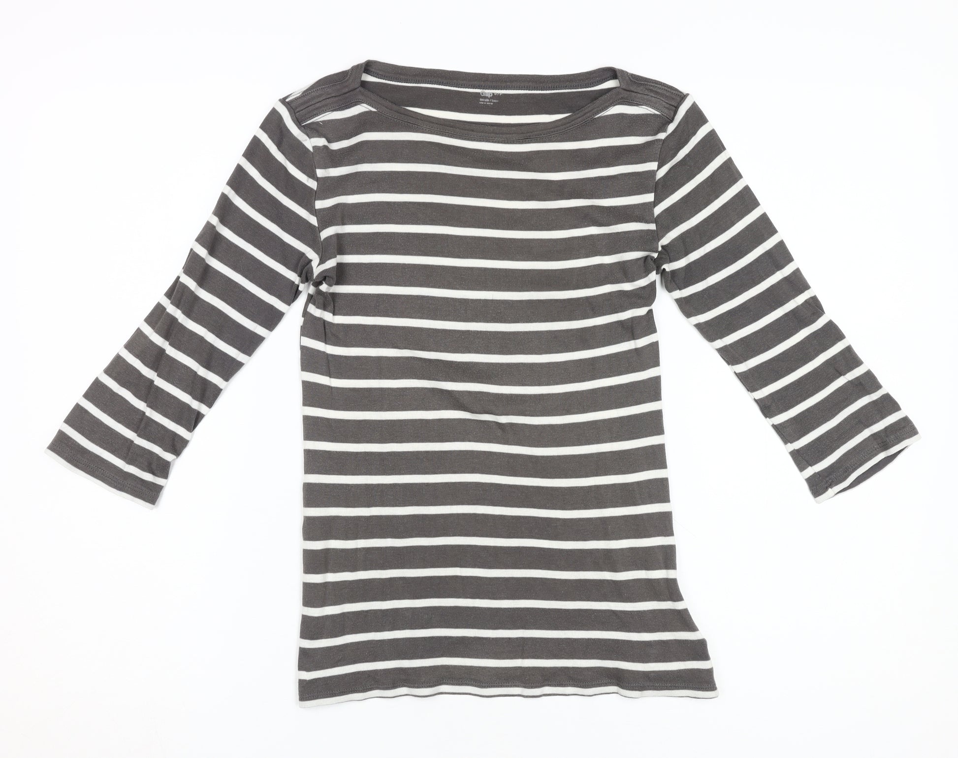Women's Grey Striped T-Shirt, Size S, 3/4 Sleeve