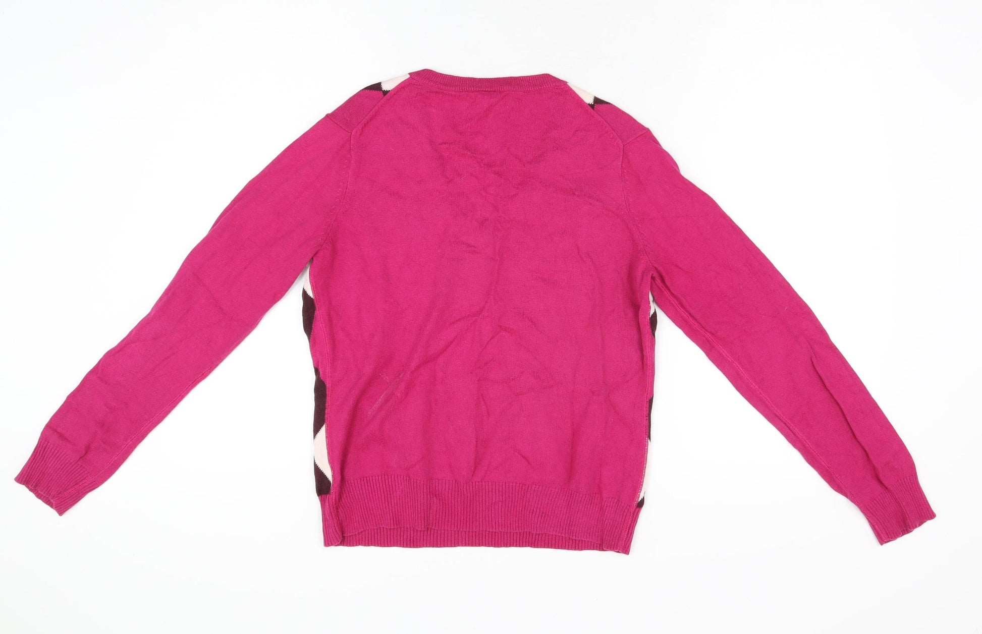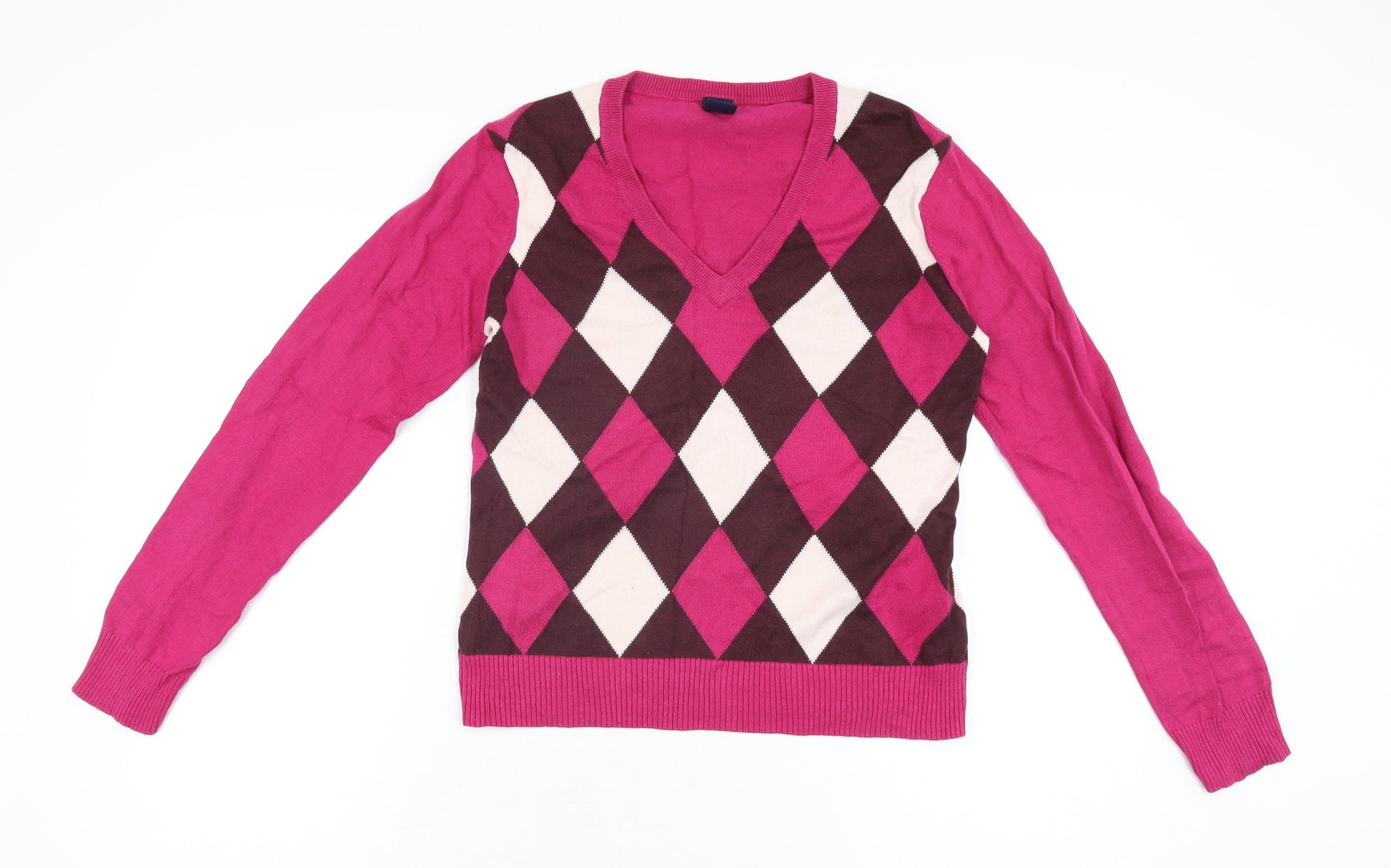 Womens Pink Geometric Cotton Basic T-Shirt Size M V-Neck