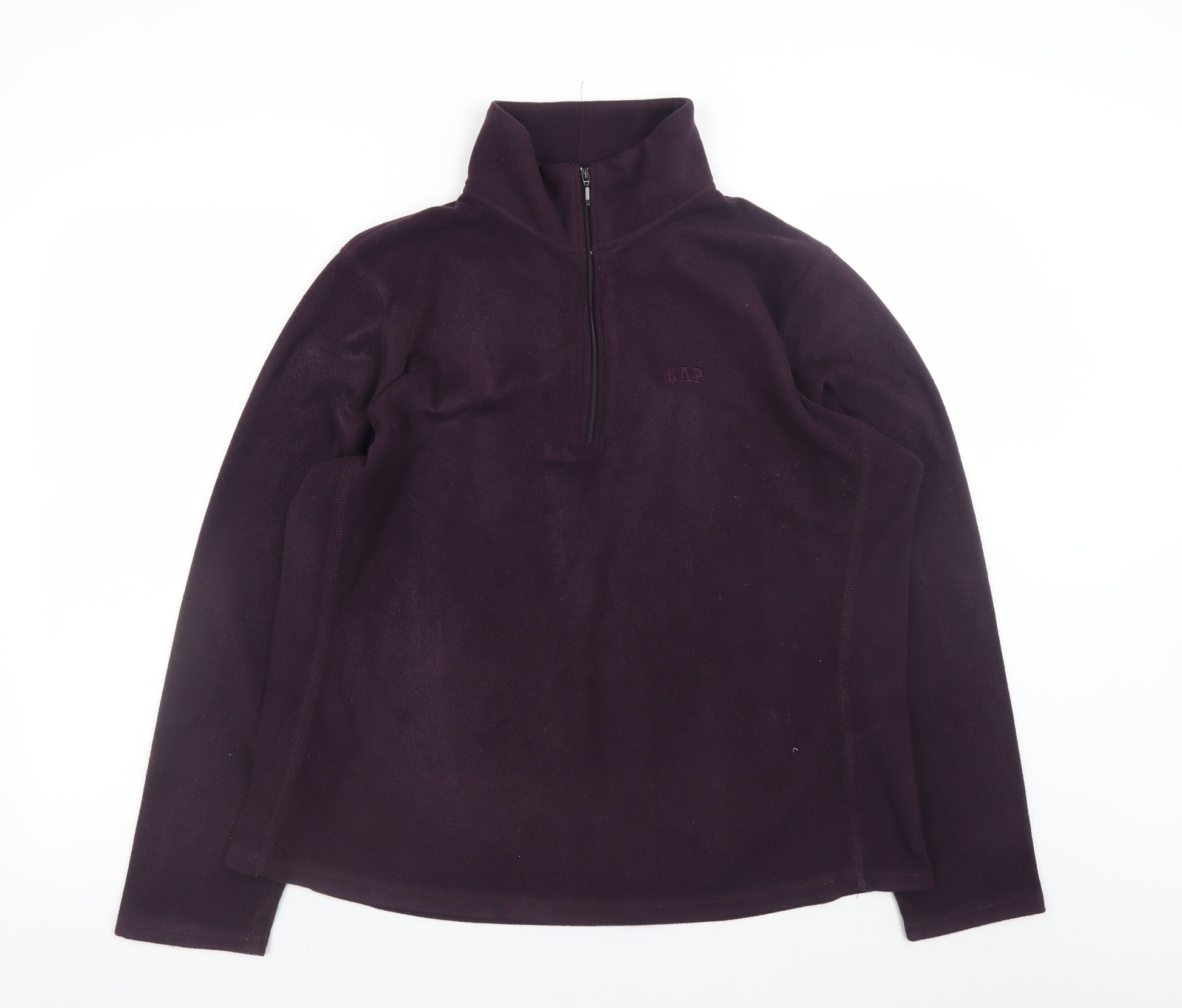 Stay warm and effortlessly stylish with this GAP women's fleece pullover sweatshirt in a rich purple shade. Crafted from soft 100% polyester fleece, it offers a plush texture that feels cosy against the skin while ensuring lightweight comfort and warmth. The 1/4 zip fastening makes it easy to layer over tees or under jackets, giving it a versatile edge for cooler weather. Designed with a high neck to provide extra protection from the chill, this pullover combines practicality and comfort with GAP’s timeless casual style. The embroidered logo on the chest adds a subtle branded touch, enhancing its classic appeal. With a relaxed regular fit and long sleeves, it’s perfect for everyday wear — whether you’re heading out for a walk, running errands, or lounging at home. Suitable for autumn and winter, this sweatshirt is easy to care for and machine washable, ensuring it stays looking and feeling fresh season after season. Pair it effortlessly with jeans, leggings, or joggers for a laid-back yet refined look. An ideal choice for women seeking both warmth and understated style from a trusted brand, this GAP fleece pullover is a must-have cold-weather essential that complements any casual wardrobe.