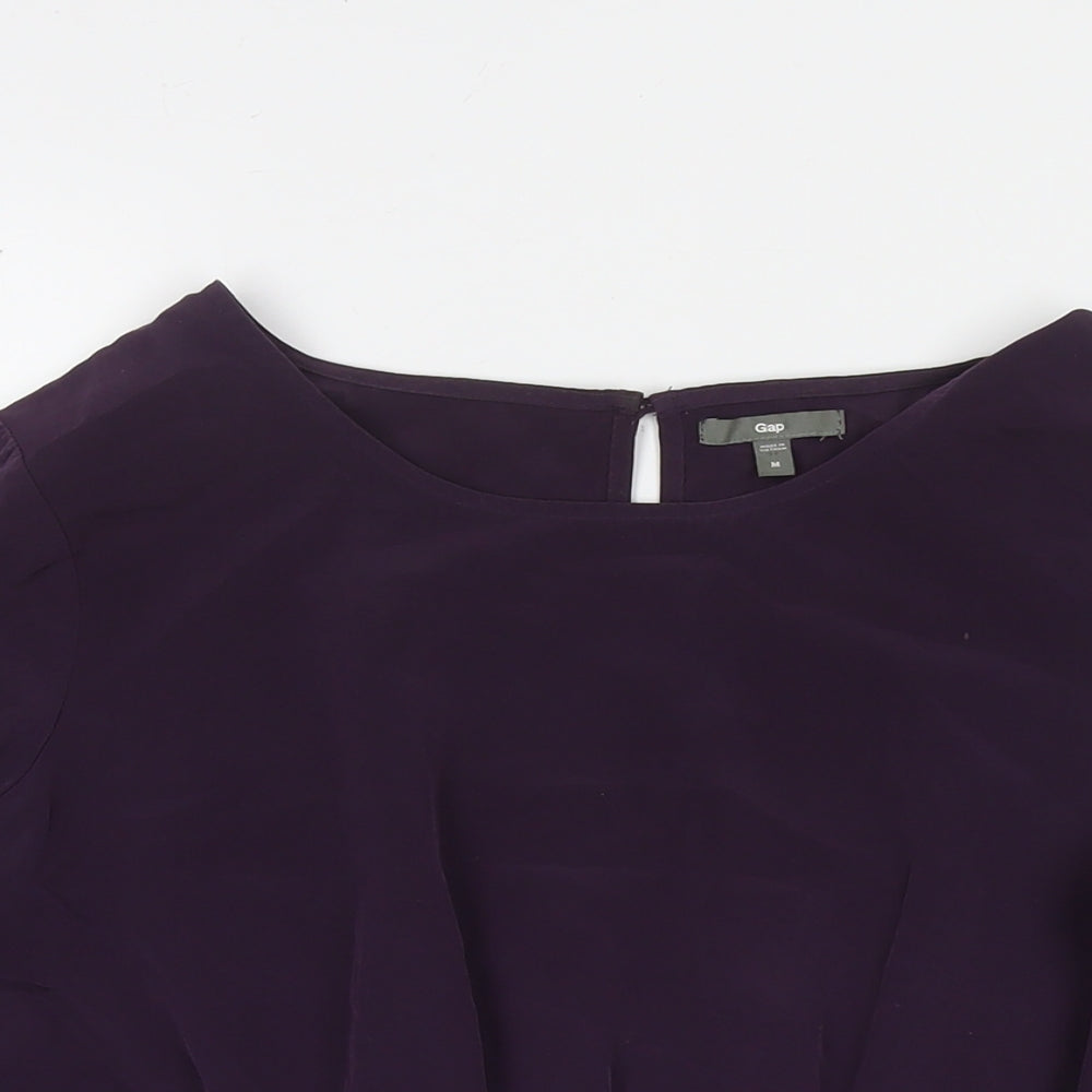 Womens Purple Polyester Basic Blouse Size M Round Neck