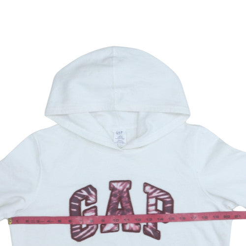 GAP Womens White Hooded Pullover Sweatshirt M Cotton Blend Logo Print