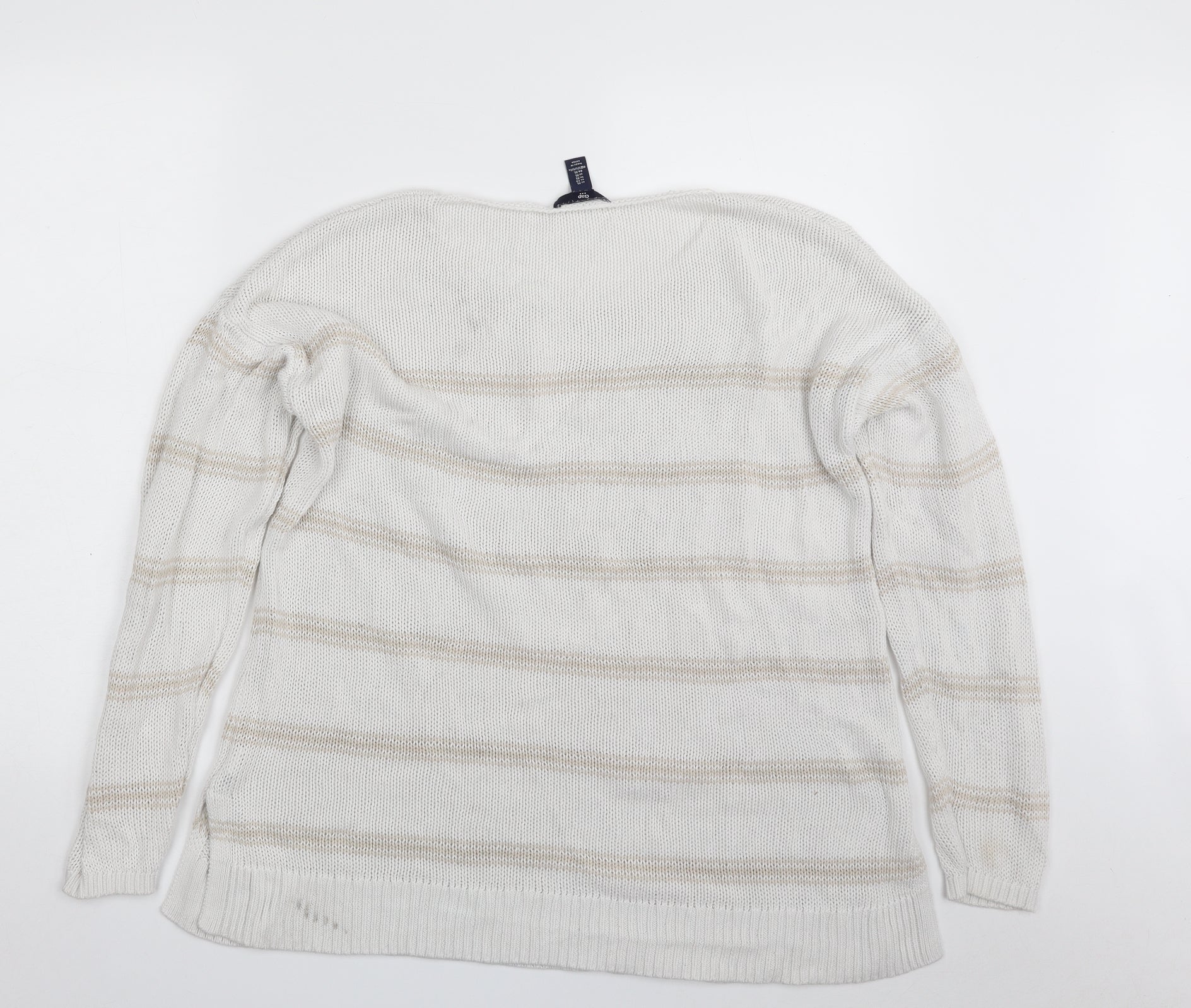 Womens White Round Neck Striped 100% Cotton Pullover Jumper Size XL