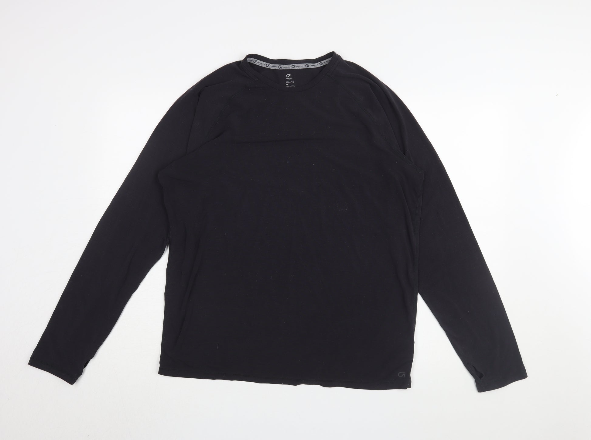 Embrace a classic and effortless style with this GapFit Men's Long Sleeve T-Shirt in a versatile black hue. Designed with a regular fit, this tee offers a comfortable and breathable experience, ideal for all seasons. Made from a high-quality blend of 74% polyester, 19% modal, and 7% elastane, the material ensures a soft touch with just the right amount of stretch to allow easy movement. The crew neck design adds a timeless appeal, making it a perfect staple in any wardrobe. This solid black t-shirt can be effortlessly paired with jeans for a casual day out or layered under a jacket for an evening look. The breathable fabric ensures you stay comfortable throughout the day, whether running errands or catching up with friends. With its excellent condition showing minimal signs of wear, this t-shirt promises great value. Perfect for those seeking comfort and style in one package, this GapFit t-shirt could be your go-to piece for both casual and active days.