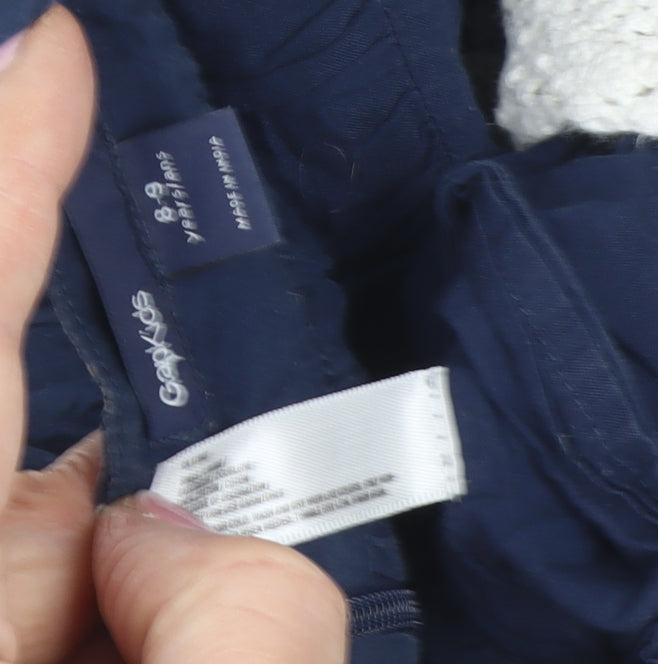 This beautiful Girls Garammas dress is ideal for spring and summer wear, blending a playful design with breathable comfort. Crafted from 100% cotton, the lightweight woven fabric ensures your child stays cool and comfortable throughout the day. The knee-length A-line silhouette offers a flattering fit while allowing ease of movement, making it perfect for everyday wear or special casual outings. The charming navy blue fabric features an all-over white butterfly and floral pattern, bringing a touch of whimsy and elegance to the piece. Delicate lace trimming along the front panels and hemline adds a pretty, vintage-inspired detail, which enhances its summery feel. The strappy, sleeveless design is complemented by a square neckline for a relaxed yet stylish look. Fully lined for comfort and modesty, the dress is equipped with a discreet zip fastening at the back, ensuring easy dressing. Ideal for pairing with sandals or ballet flats, this dress is suited to a variety of occasions, from family picnics and garden parties to casual days out. Although pre-owned, it has been kept in very good condition with only light creasing visible and no signs of wear such as staining or tears. It does not come with the original tags, making it a fantastic value choice for parents who want quality clothing without the brand-new price tag. Perfect for girls aged 8 years, this garment captures the essence of sunny days and playful adventures, making it a must-have staple in any young girl's wardrobe. Whether for everyday comfort or a special summer event, this Garammas dress will ensure she feels as good as she looks.
