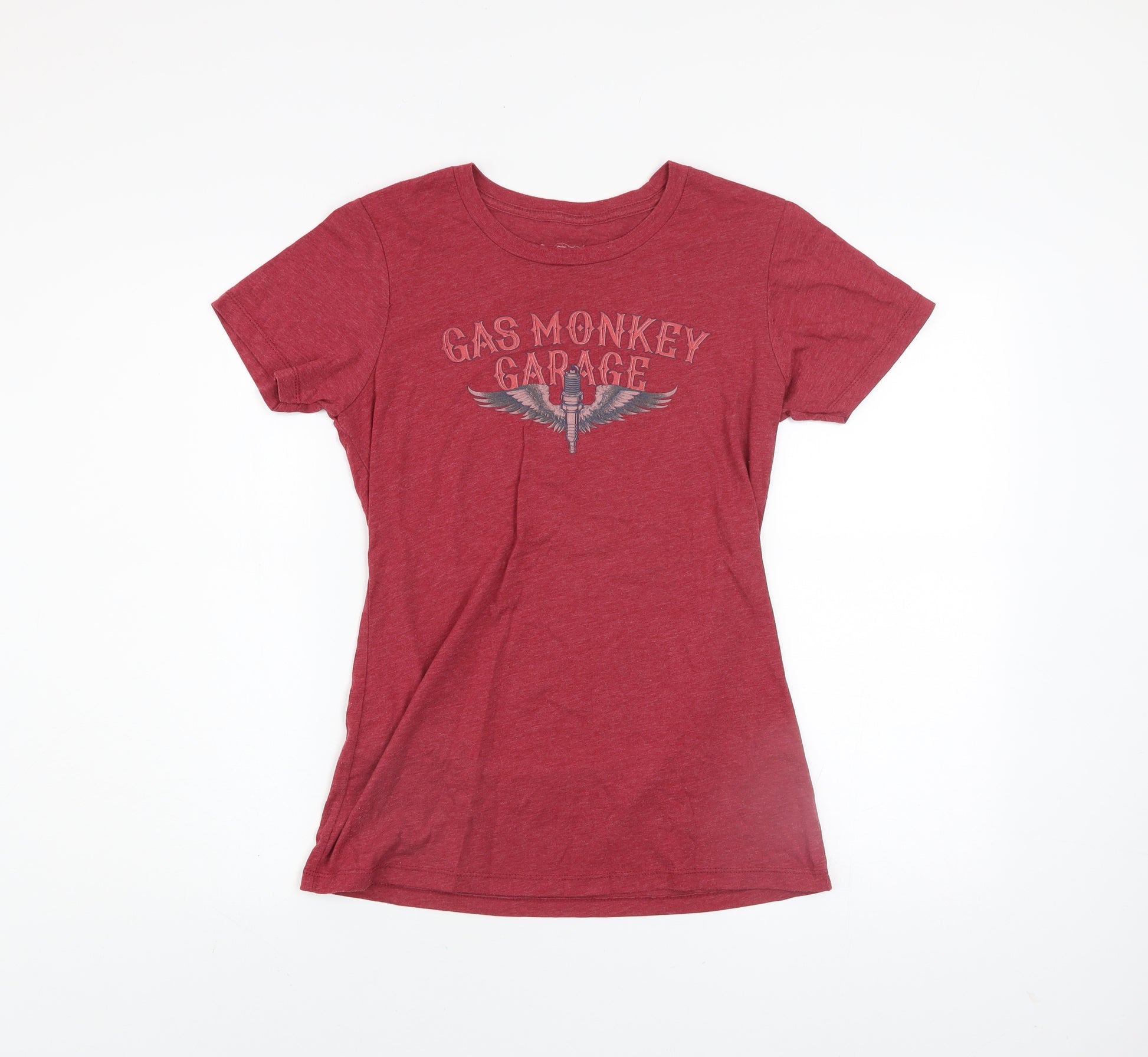 Bring your casual wardrobe to life with this officially licensed Gas Monkey Garage women's red T-shirt. Crafted from a soft and breathable cotton blend fabric, this tee combines comfort with attitude, making it perfect for everyday wear. The short sleeve, crew neck design ensures a timeless shape that sits comfortably on the body, while the lightweight jersey fabric offers a relaxed fit ideal for all-day comfort. A bold printed Gas Monkey Garage logo features on the front, complete with the brand’s signature automotive-inspired graphics that make this piece stand out from standard basics.The back design features a vivid vintage-style car print with ‘Dallas Tex 2004’ and the iconic ‘Blood, Sweat and Beers’ slogan, showcasing the signature rebellious spirit Gas Monkey Garage is known for. Its breathable material makes it suited to spring and summer styling, while the slight stretch from the polyester blend allows for flexibility and ease of wear. Pair it with jeans, denim shorts, or a leather jacket for an effortlessly cool look that channels rock and retro energy.Made in the USA, this officially branded tee ensures quality craftsmanship and lasting comfort. With a regular fit and light fabric weight, it’s ideal for casual days out, live gigs, or relaxed weekends. The T-shirt is machine washable for easy care, making it both a practical and stylish choice. In excellent pre-owned condition with light signs of wear and no visible damage, it’s a great addition for fans of Gas Monkey Garage or anyone who loves distinctive automotive-inspired fashion. A must-have piece for those who appreciate casual gear with character, this red tee promises both comfort and personality in one standout design.