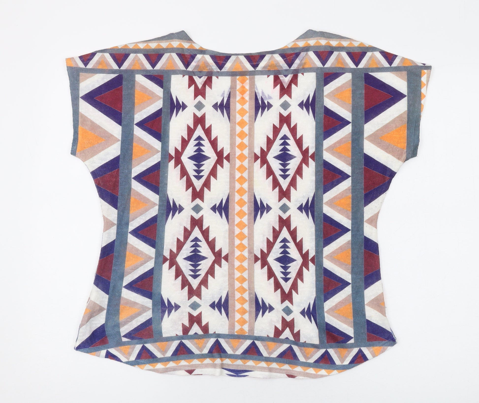 Womens Multicoloured Geometric Polyester Basic T-Shirt Size L Round Neck