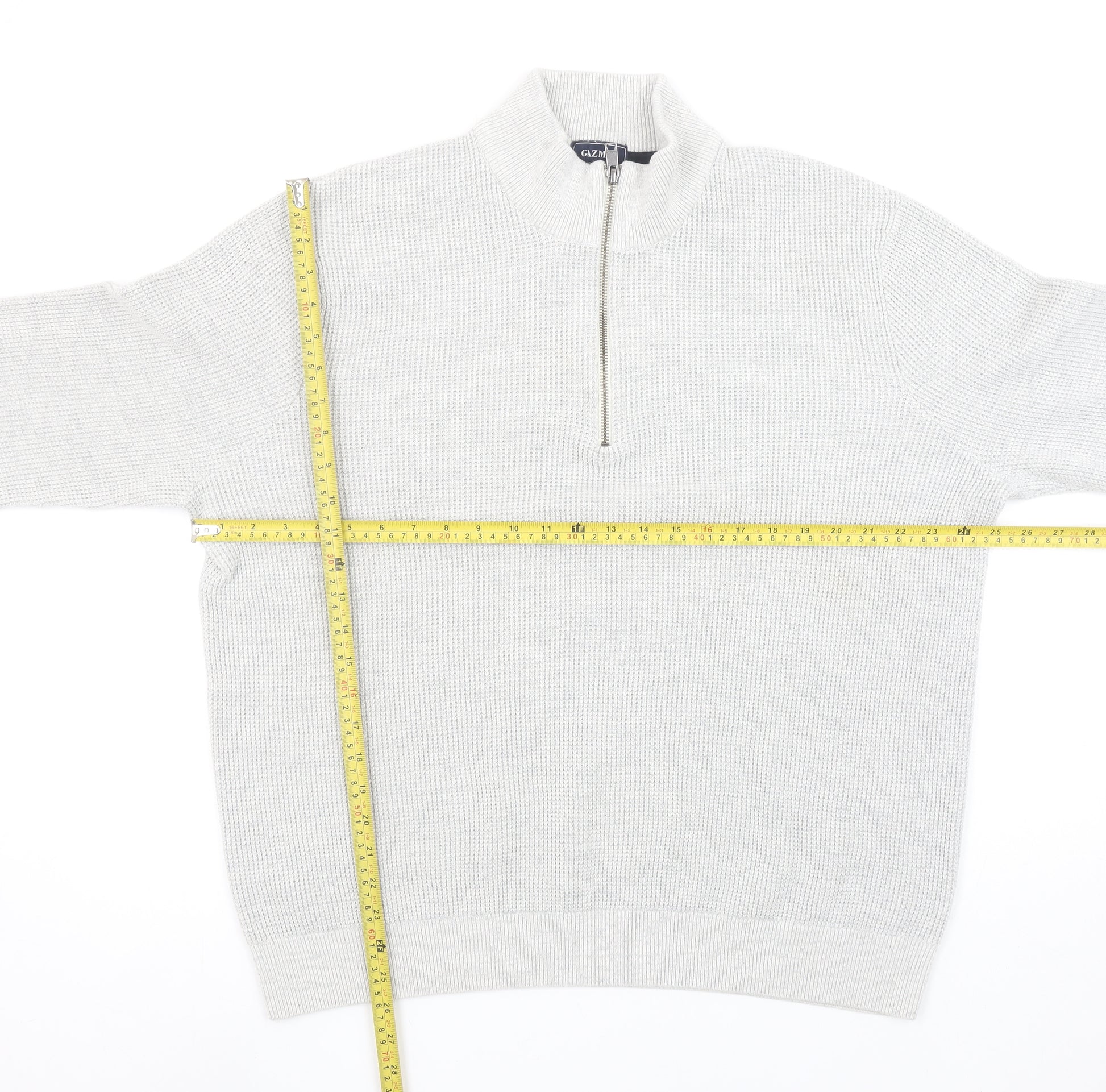 Men’s Grey Cotton Half Zip Waffle Knit Jumper XL