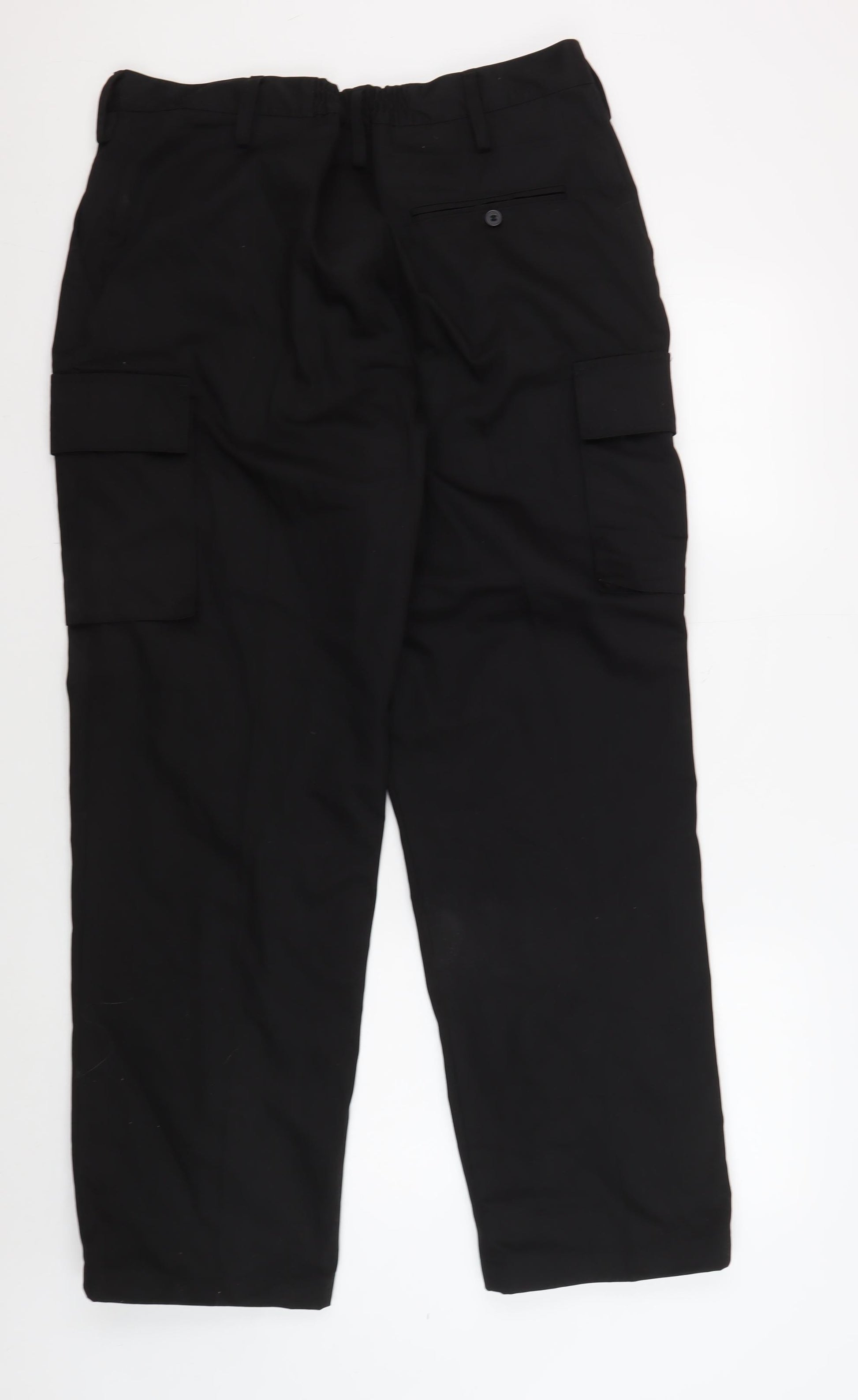 These versatile black cargo trousers from Gear are ideal for everyday wear. Designed for unisex adults, the regular fit and flat front offer a classic look suitable for casual occasions. Made from a durable blend of polyester and cotton, these trousers are both machine washable and easy to care for. With a practical button closure and handy pockets, they offer both style and functionality. The classic theme and twill fabric type make them a staple piece in any wardrobe. Though in very good condition, some minor wear and slight marks are present, adding a touch of character. Offering comfort and durability, these trousers are perfect for all seasons. Pair them with your favourite top for a relaxed yet stylish outfit.