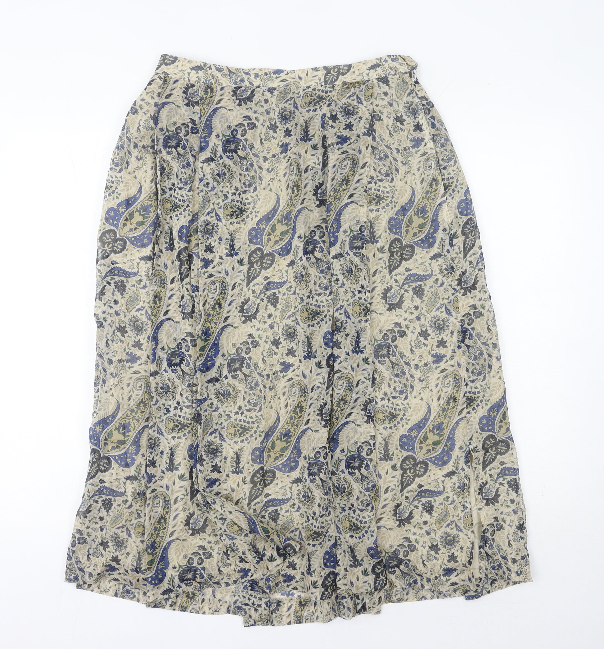 Women’s Beige Paisley A-Line Midi Skirt Size 14 Vintage Cotton