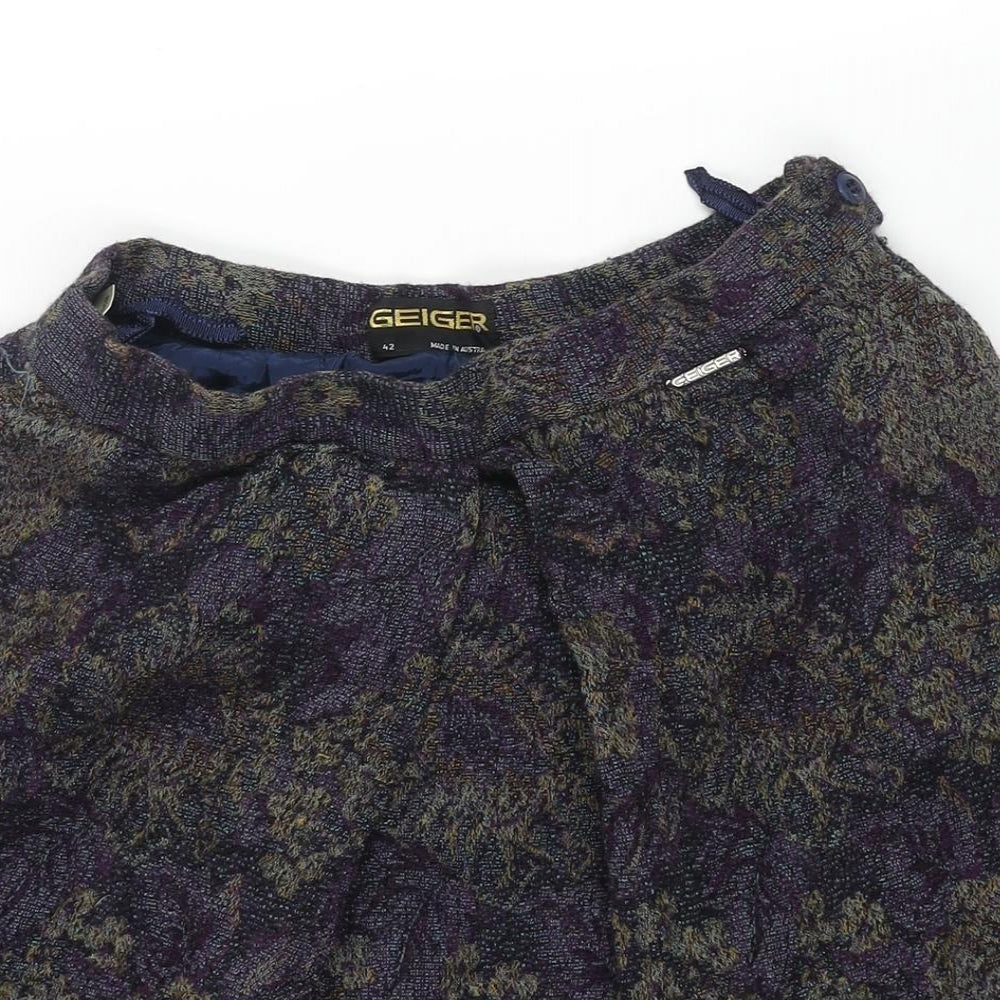 Womens Multicoloured Geometric Wool A-Line Skirt Size 14 Zip