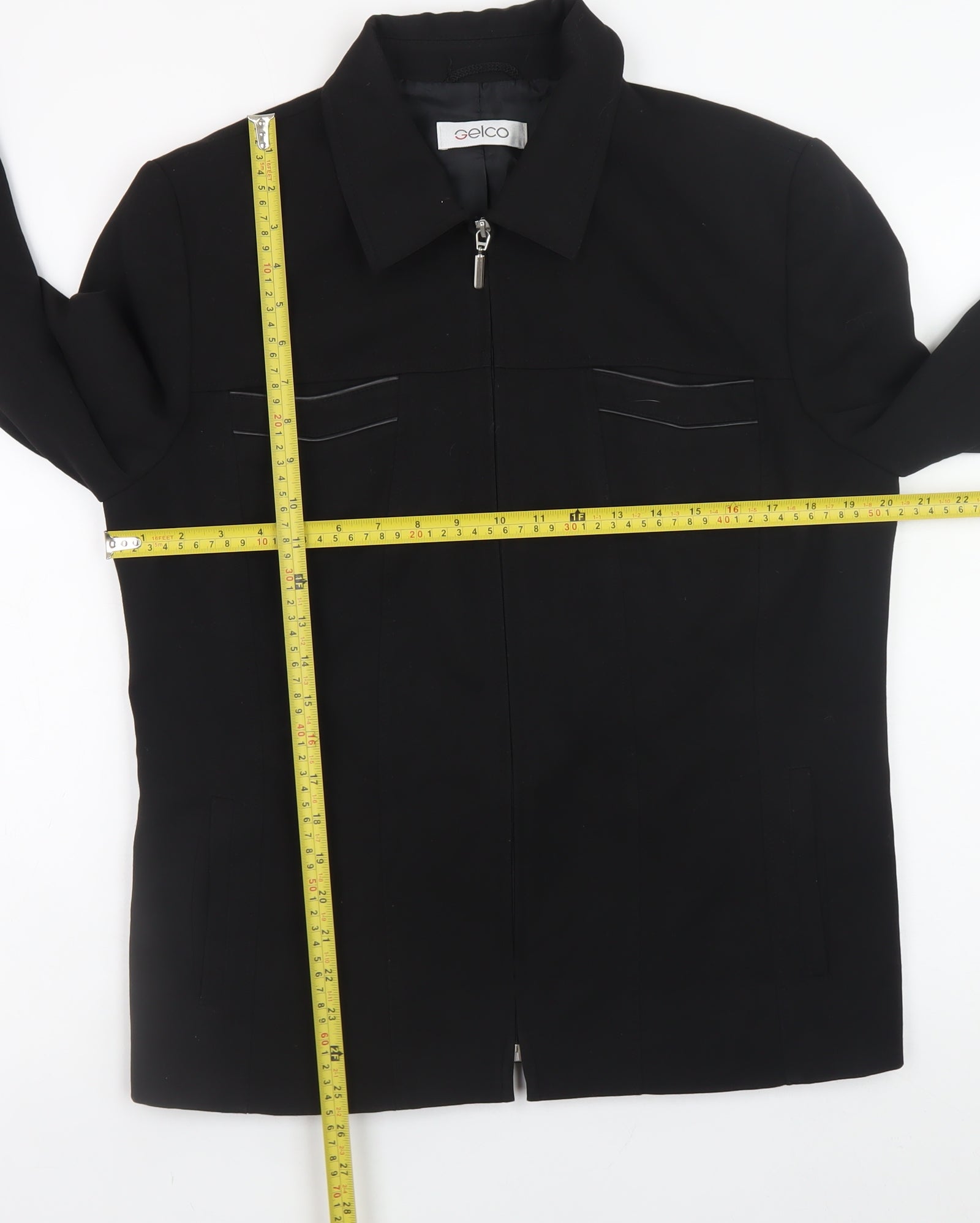 This elegant black jacket by Gelco offers a sophisticated yet practical option for cooler seasons, ideal for both casual and workwear occasions. Crafted for women in a UK size 14, this mid-length jacket features a timeless full zip front for easy closure and understated styling. The classic collared neckline adds a polished touch, while the twill texture of the polyester fabric ensures it retains structure and shape, providing a flattering fit. Its simplicity is balanced by subtle detailing, such as neat seams and smooth lines, making it versatile for layering over blouses, jumpers, or dresses. Lined for added comfort and warmth, the jacket is suitable for autumn and winter wear, keeping you insulated without feeling too heavy. Presented in a solid black colour, it’s a wardrobe essential that effortlessly pairs with any outfit combination, from smart-trousers to jeans. The durable, machine-washable polyester fabric ensures easy maintenance, perfect for everyday use. The zip accent adds a modern finish, making it both functional and stylish. Designed for a comfortable regular fit, this piece exudes minimalistic elegance while delivering quality craftsmanship. Lightly worn but well cared-for, it remains in excellent condition with no visible flaws or marks. For anyone seeking a reliable outerwear piece that balances classic sophistication and everyday practicality, this Gelco jacket makes a wonderful addition to your collection. Its tailored silhouette and versatile design make it particularly suited to transitional weather or workplace ensembles. Whether heading to the office or out for an evening stroll, this coat will keep you looking sharp and feeling confident throughout the day. Comfortable, chic, and effortlessly smart, it embodies the timeless appeal of Gelco’s design philosophy.