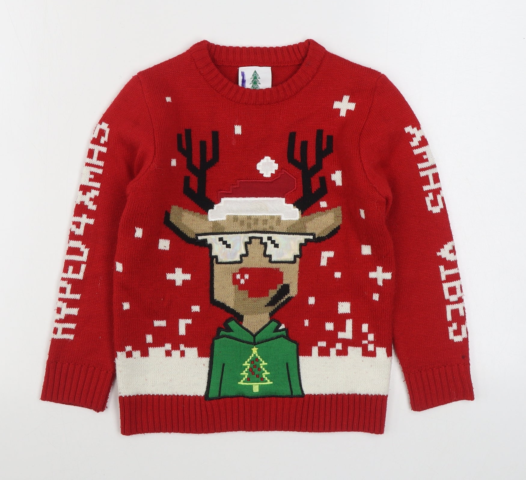 Boys Red Round Neck Acrylic Pullover Jumper Size 7-8 Years Pullover - Christmas Jumper