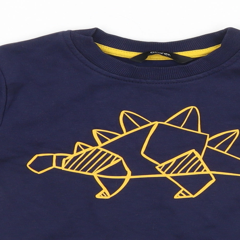 Boys Blue Round Neck Cotton Pullover Jumper Size 3-4 Years - Dinosaur
