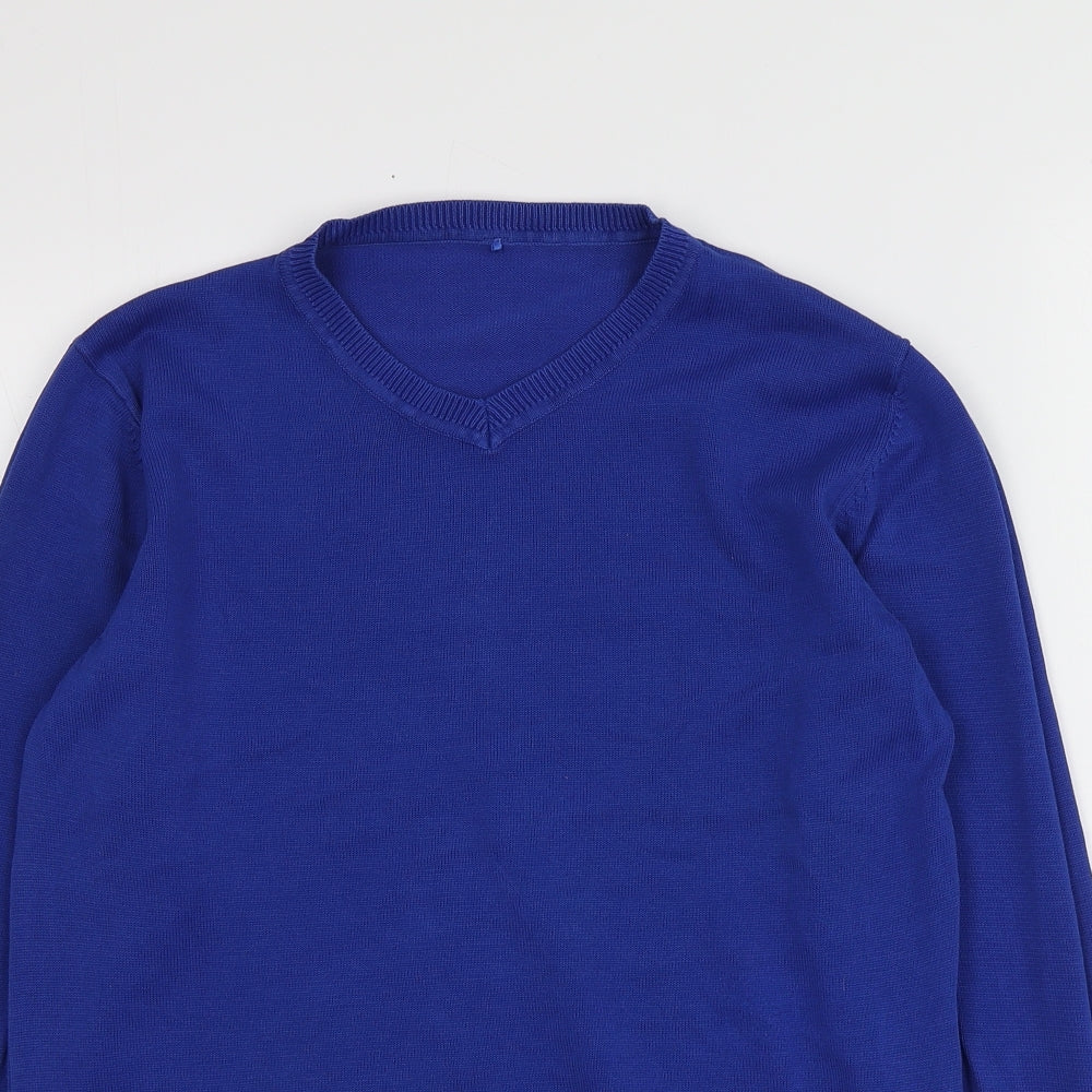 Boys Blue V-Neck Cotton Pullover Jumper Size 13-14 Years