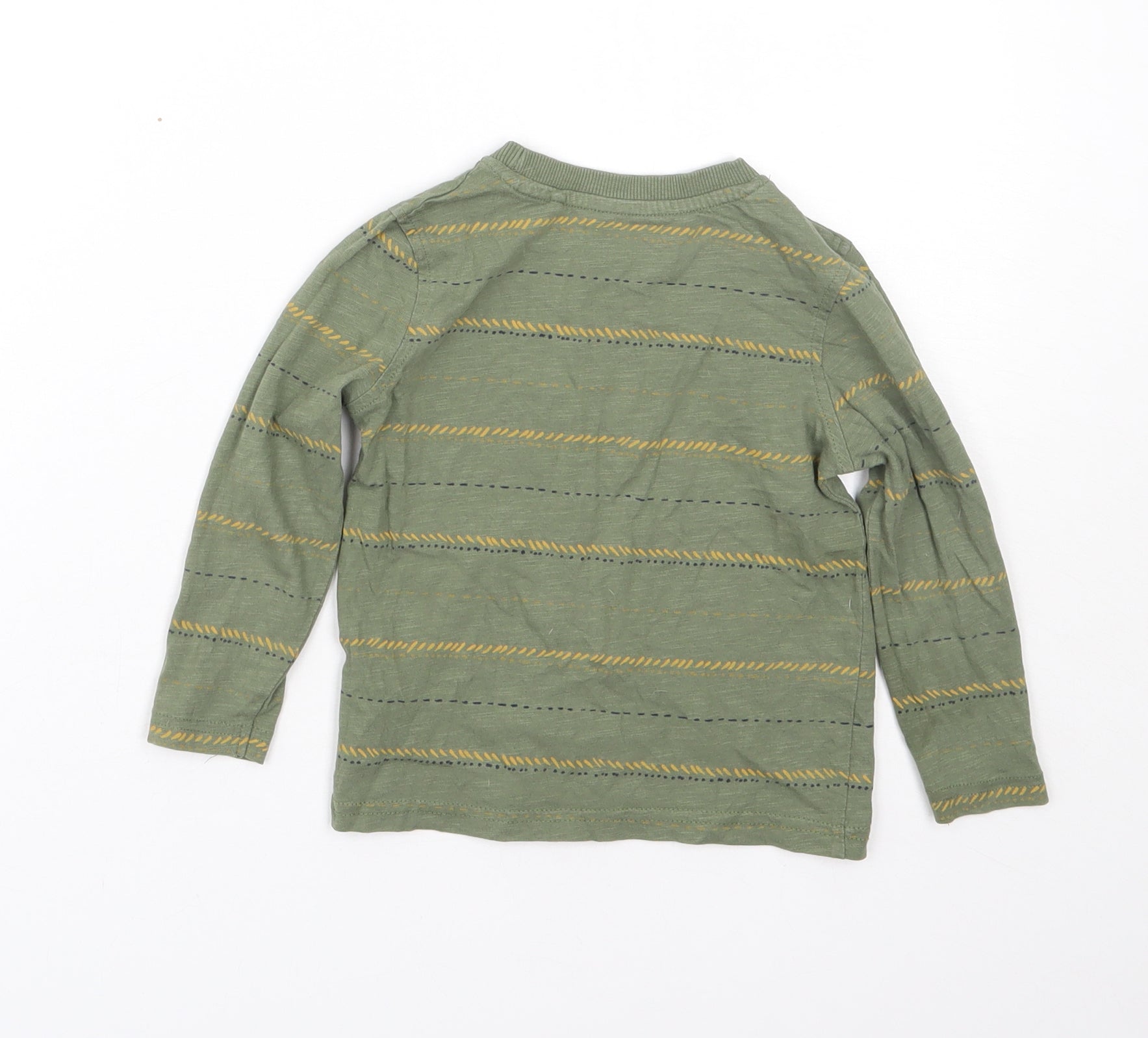 Boys Green Striped Cotton Basic T-Shirt Size 18-24 Months Crew Neck