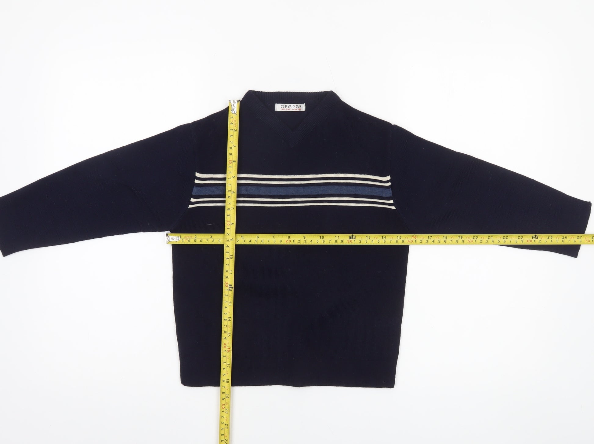 Boys Navy Striped V-Neck Jumper 5-6 Years Acrylic Knit