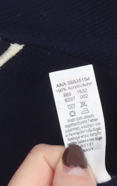 Keep your little one warm and stylish with this classic George boys' navy striped jumper, perfect for school days and casual outings alike. Designed for ages 5-6 years (110–116 cm height), this pullover offers both comfort and versatility for everyday wear. The timeless navy base is enhanced with horizontal white and blue stripes across the chest, giving it a sporty yet refined look that works well for layering over shirts or wearing on its own. Made from 100% acrylic knit fabric, it provides softness and warmth while remaining lightweight and easy to care for — ideal for parents seeking practical, machine-washable clothing. The V-neck neckline adds a smart touch, making it suitable for both casual and semi-formal occasions. Its long sleeves ensure comfort and full coverage during cooler autumn and winter days. The jumper is crafted with a tight-knit structure for durability, ensuring it holds its shape even after repeated washes. This piece is in excellent pre-loved condition, showing minimal signs of wear with no stains or fabric pulls. It’s a great choice for school, play, or weekend wear, maintaining George’s reputation for quality and value. With a comfortable regular fit and versatile design, this navy striped jumper is a wardrobe essential that pairs effortlessly with jeans, chinos, or school trousers. Practical, stylish, and cosy, it’s the perfect blend of function and fashion for young boys. Don’t miss the chance to grab this reliable everyday jumper at a great price – ideal for parents looking to refresh their child’s wardrobe with trusted George quality at an affordable value.