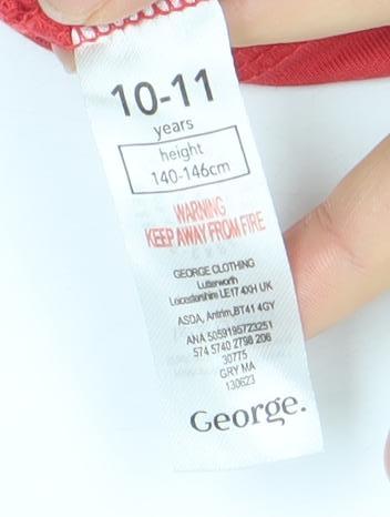 Brighten up your child’s wardrobe with this fun and colourful George Boys Red Super Mario Long Sleeve T-Shirt. Designed with comfort and playfulness in mind, this officially licensed top features the popular Super Mario character printed boldly across the front, making it a must-have for young gamers and fans of the iconic Nintendo series. Crafted from 100% cotton in a soft jersey fabric, this T-shirt ensures breathability and comfort for all-day wear. Its crew neck and regular fit create an easy, relaxed style perfect for casual outings, school, or lounging at home. The striking red body is complemented by contrasting black panels on the sleeves, adding a sporty edge to the design. Ideal for cooler weather, the long sleeves provide warmth while maintaining lightweight comfort. The pullover style makes it easy to wear, while its machine washable material ensures hassle-free care for busy parents. This piece is part of George’s Wear Me, Care For Me sustainability range, promising both quality and responsible sourcing. With a bold Super Mario logo and vibrant colours, it’s a statement piece sure to please any young fan. Perfect for everyday wear, gaming marathons, or themed parties, this T-shirt bridges fun and function effortlessly. In very good pre-owned condition, it shows minimal signs of previous wear and retains bright colours and clear graphics. Whether paired with jeans, joggers, or shorts, this Super Mario tee is a fun and versatile option for any boy’s wardrobe. Great value and full of personality, it’s the perfect casual top for an energetic, fun-loving child who loves classic game characters. A playful choice that parents will appreciate for quality and comfort.