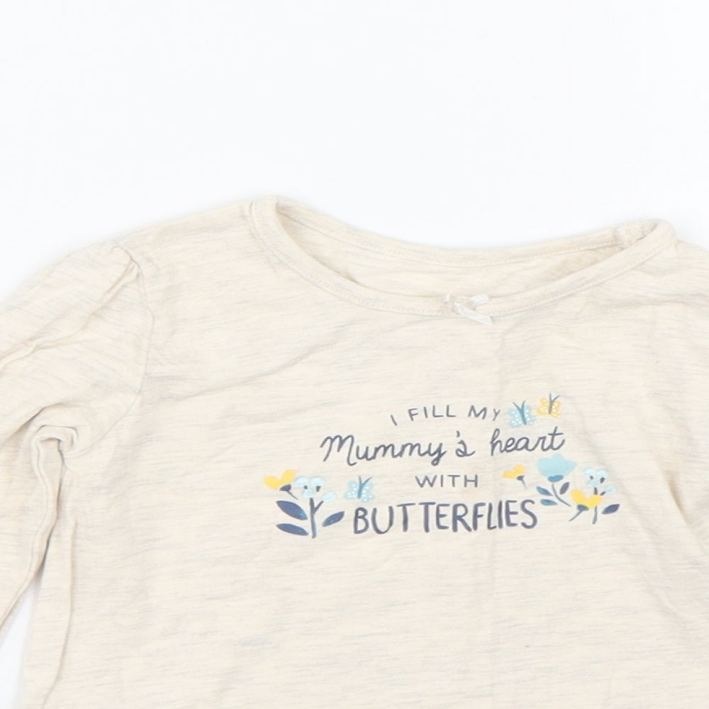 Girls Beige Basic T-Shirt Size 12-18 Months - Butterflies