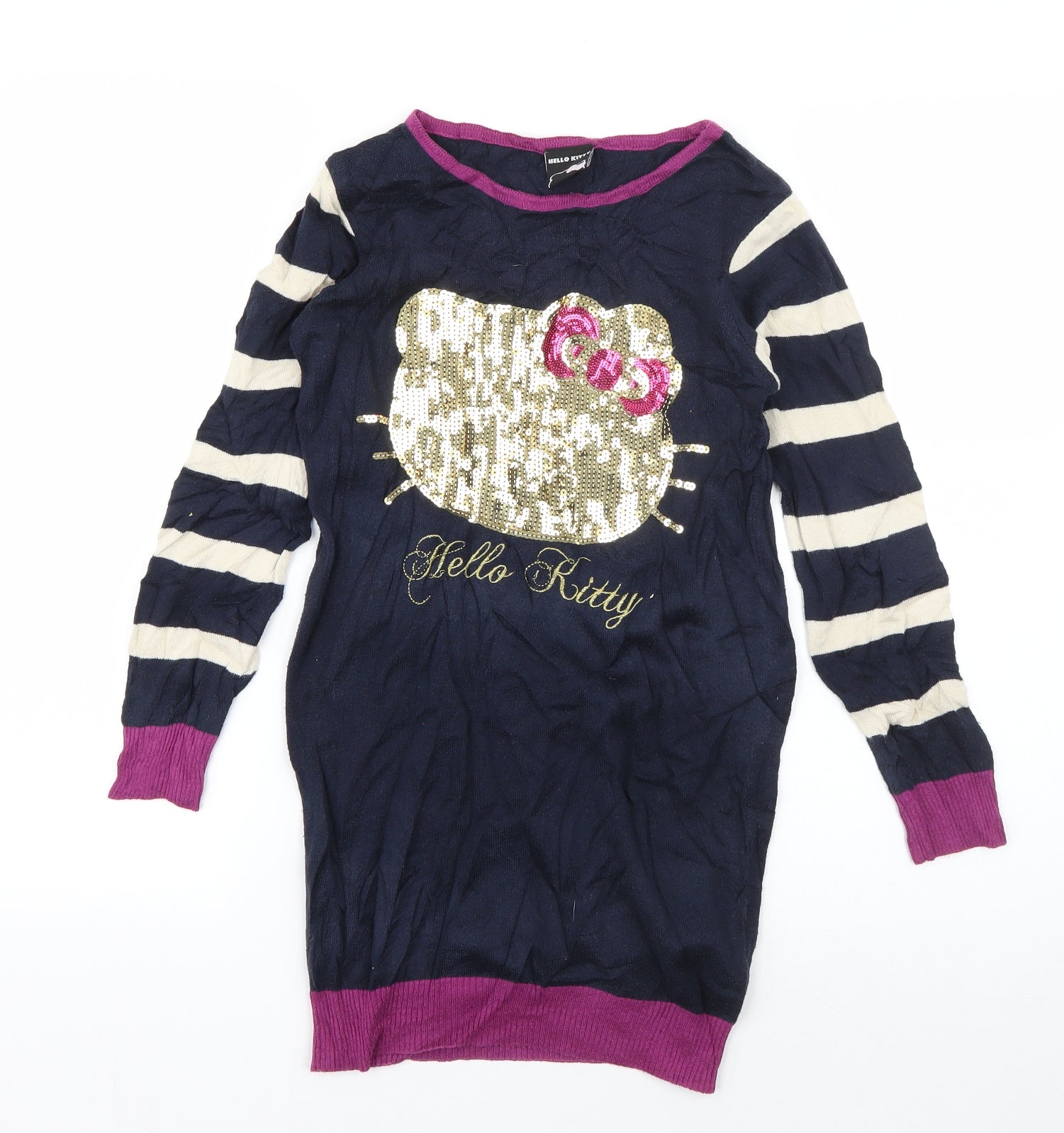 Girls Blue Boat Neck Cotton Pullover Jumper Size 8-9 Years Pullover - Hello Kitty