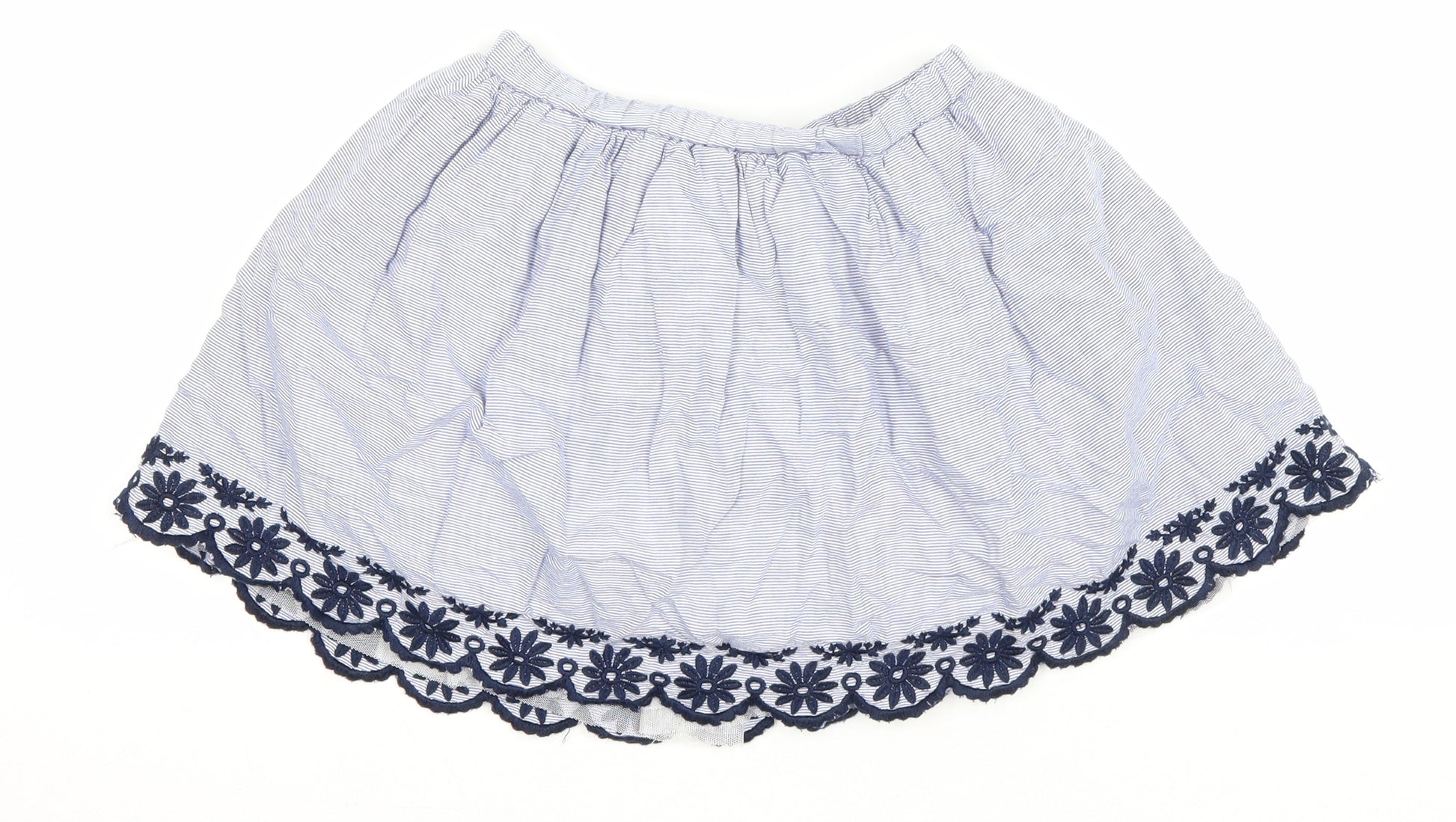 Girls Blue Striped Polyester Flare Skirt Size 7-8 Years Regular Pull On