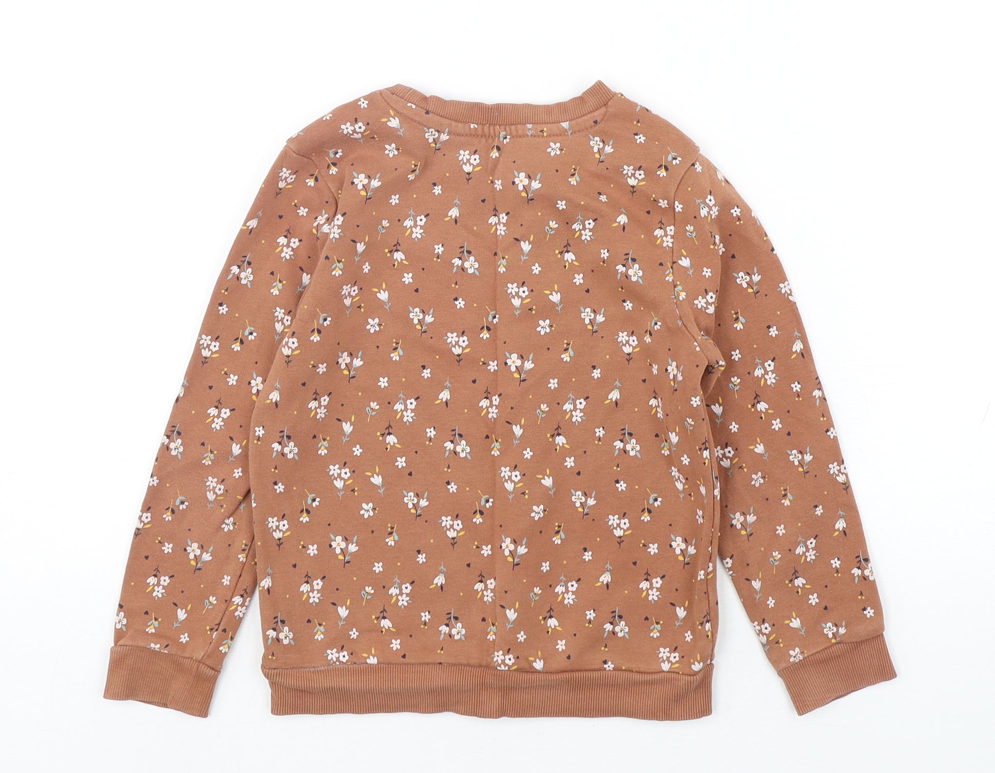 Girls Brown Floral Cotton Pullover Sweatshirt Size 5-6 Years Pullover