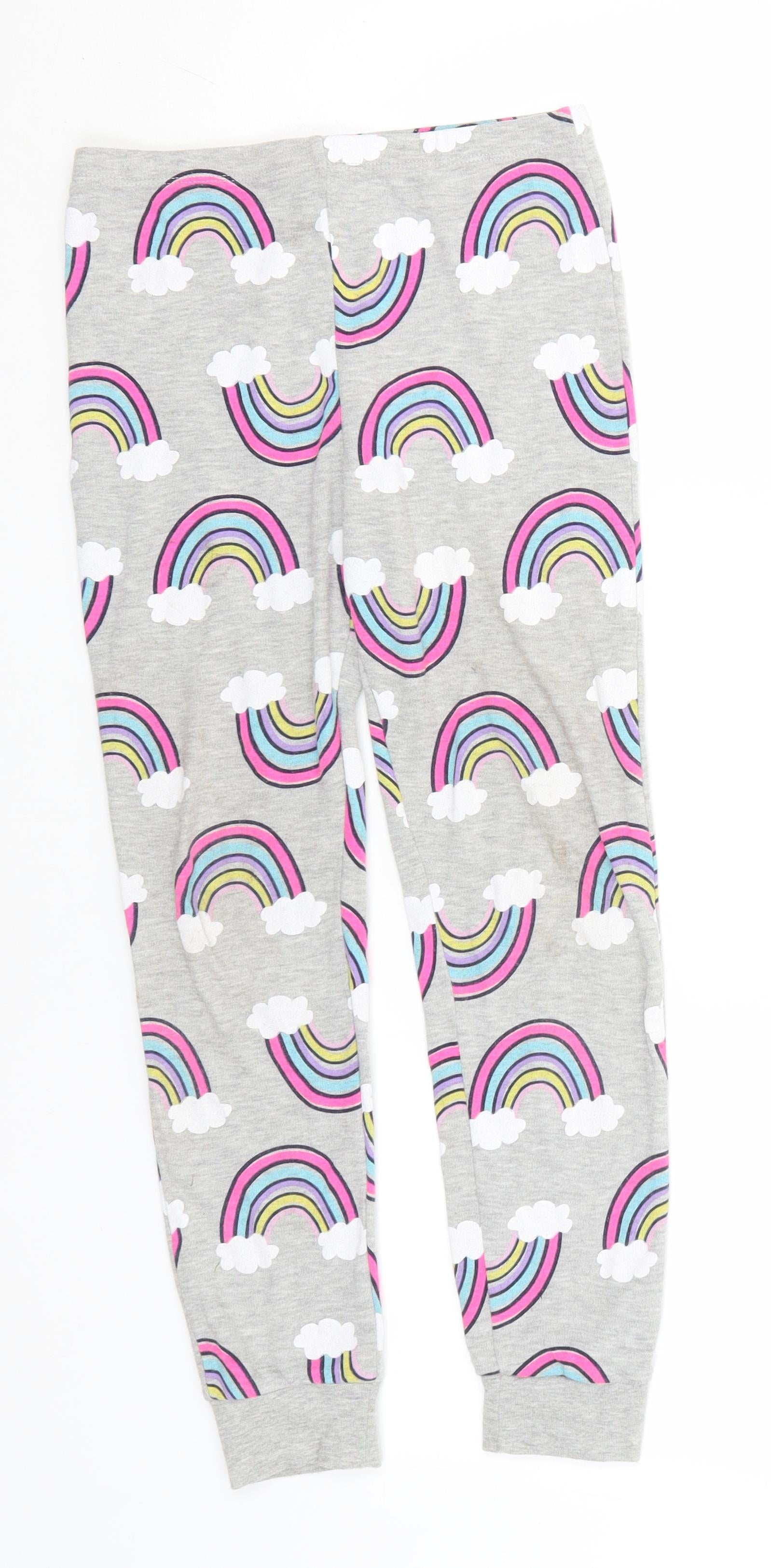 Girls Grey Geometric Polyester Pyjama Pants Size 8-9 Years - Rainbows