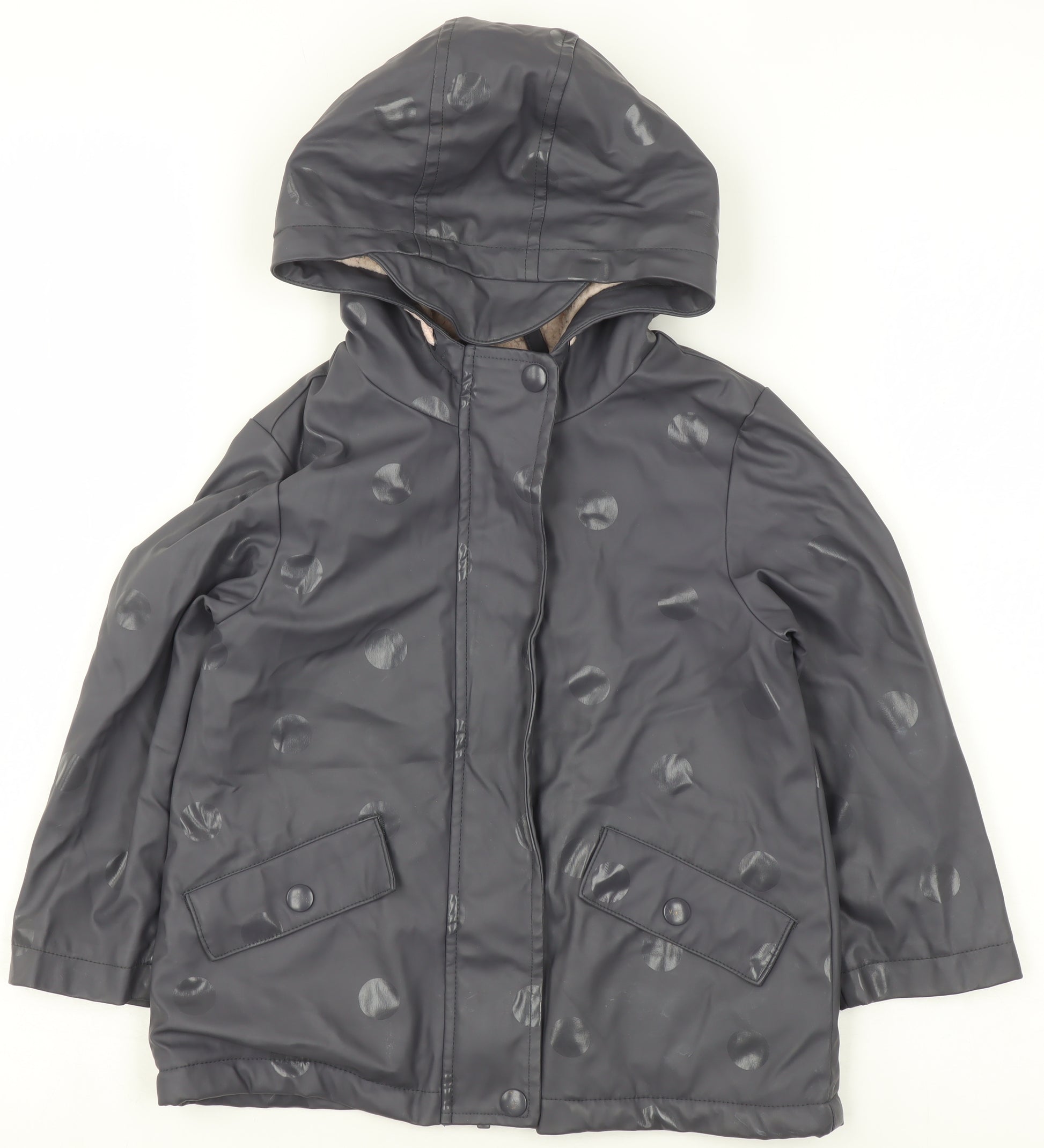 Girls Grey Polka Dot Hooded Rain Coat 3-4 Years Waterproof Lined Jacket