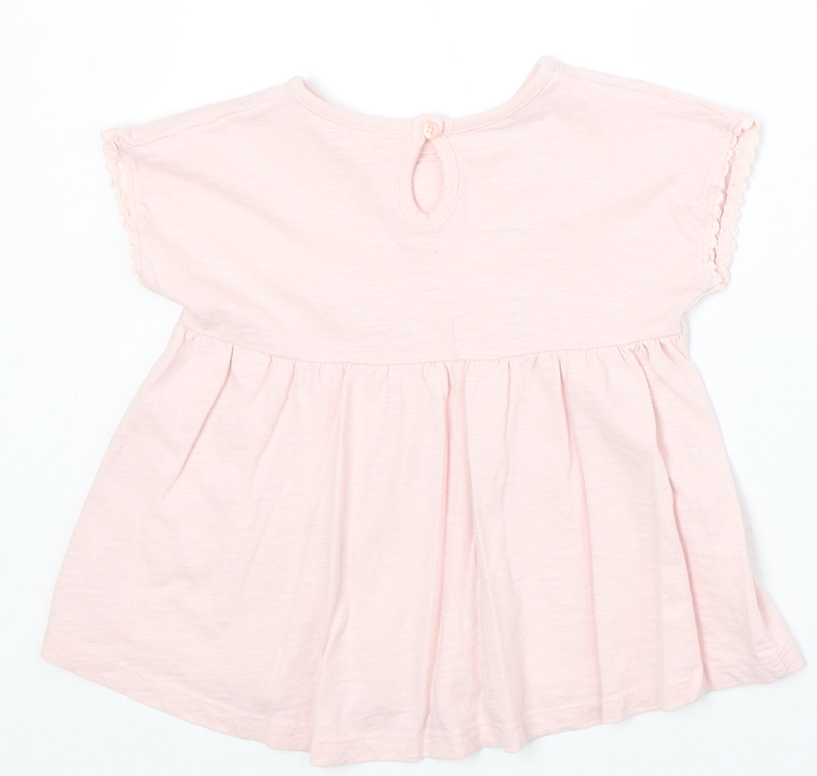 Girls Pink 100% Cotton Basic T-Shirt Size 3-4 Years Round Neck Button