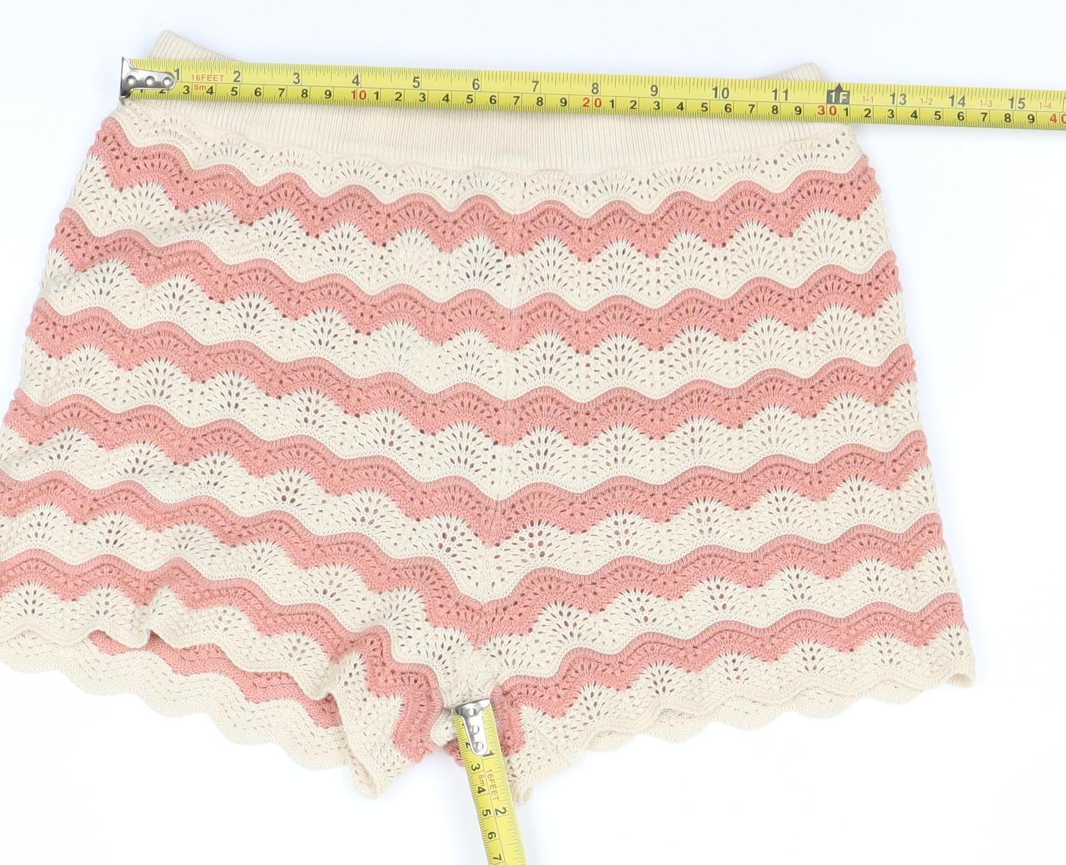 Girls Pink & Beige Knit Striped Shorts 6-7 Years Cotton Blend