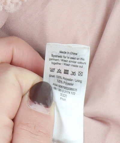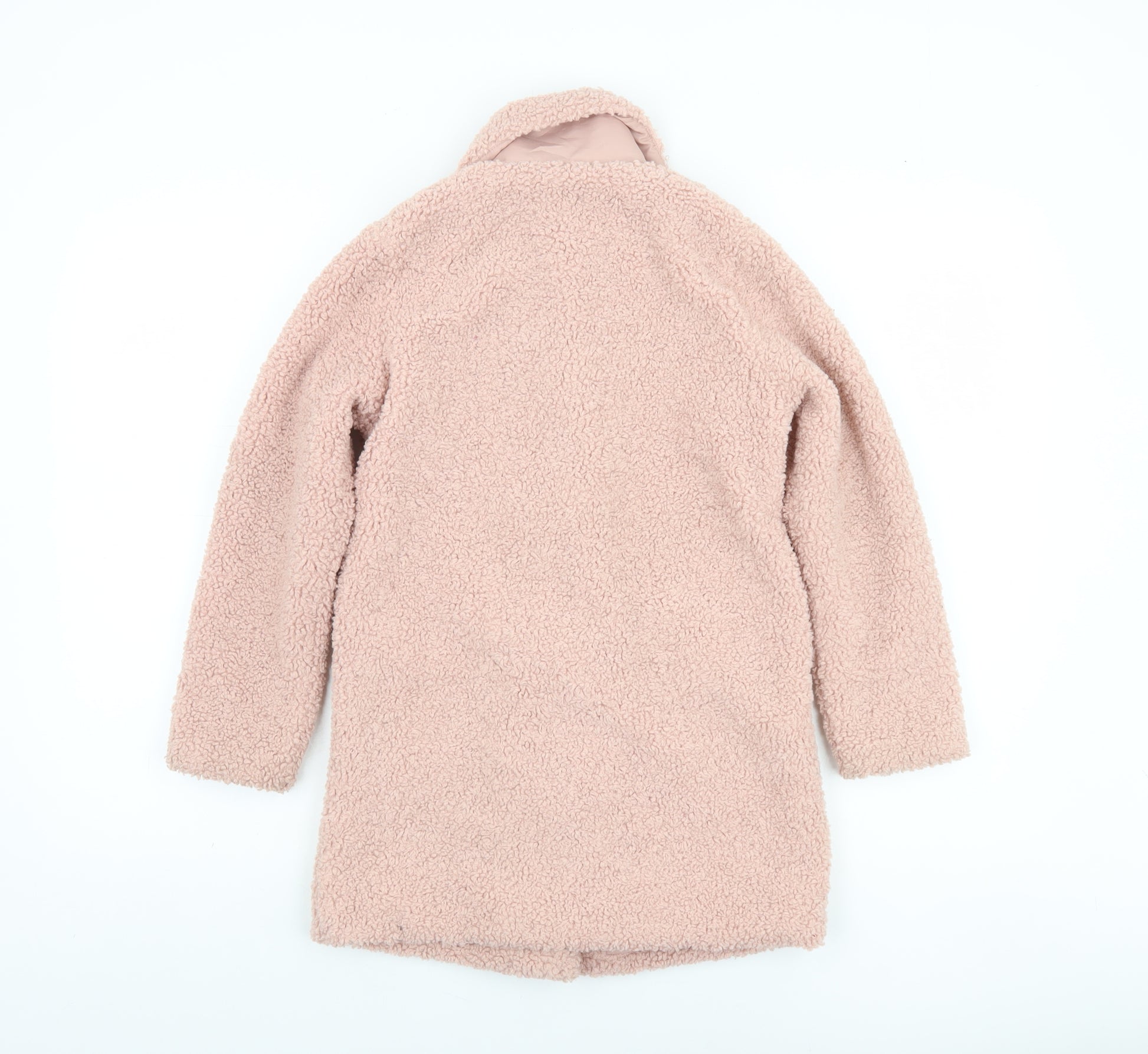 Girls Pink Teddy Fleece Mid-Length Coat 7-8 Years Button Up