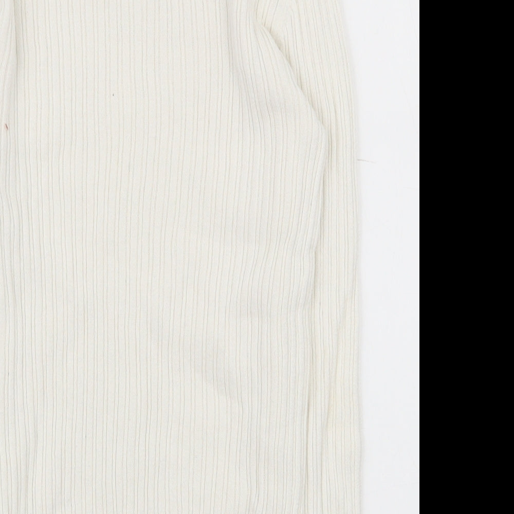 Girls White 100% Cotton Basic T-Shirt Size 8-9 Years Roll Neck Pullover